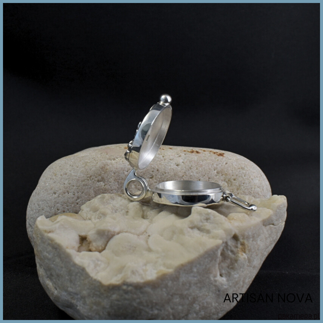 Ten ręcznie wykonany medalion sekretnik to wyrafinowany przykład piękna rzemiosła, który łączy w sobie funkcjonalność i głęboki, sentymentalny urok. Otwierany wisiorek pozwala na ukrycie wewnątrz zdjęcia bliskiej osoby lub innego drobiazgu. Można mieć go zawsze blisko serca.