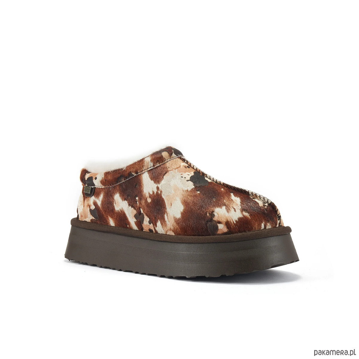 Buty o ultra niskim kroju z podeszwą platformową. Cholewka z nadrukowanej krowiej skóry. Wyściółka z supermiękkiej, czystej owczej skóry.