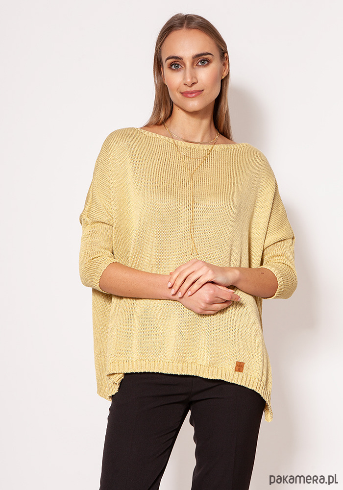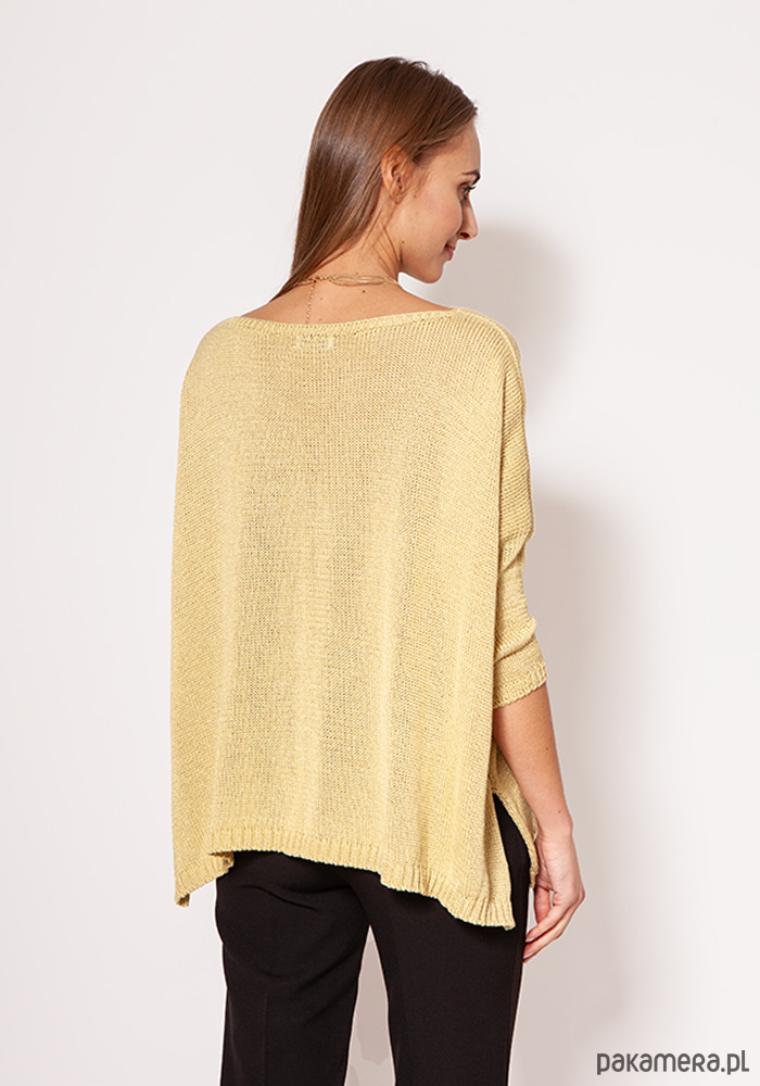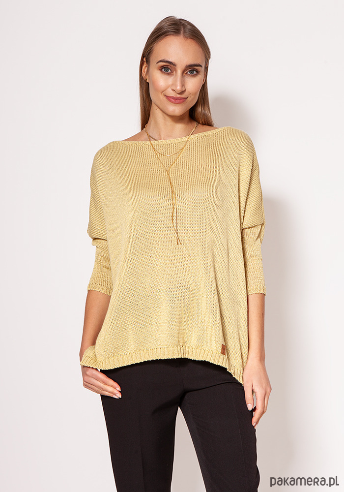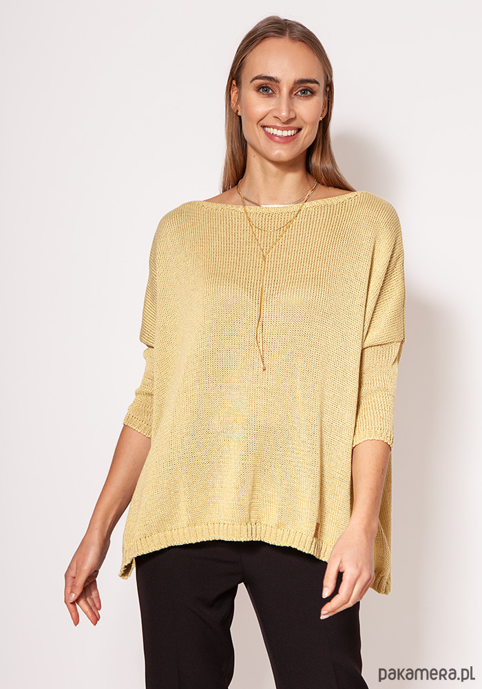 Sweter kojarzy ci się wyłącznie z warkoczowym ocieplaczem na zimę? Czas zmienić spojrzenie na dzianinę. Ten oversize'owy sweterek to bardzo elegancka propozycja, która sprawdzi się nawet podczas większego wyjścia. Modny fason, wysokiej jakości przędza z szykownie połyskującą nitką i perfekcyjne wykonanie sprawią, że poczujesz się w nim bardzo kobieco i wytwornie.