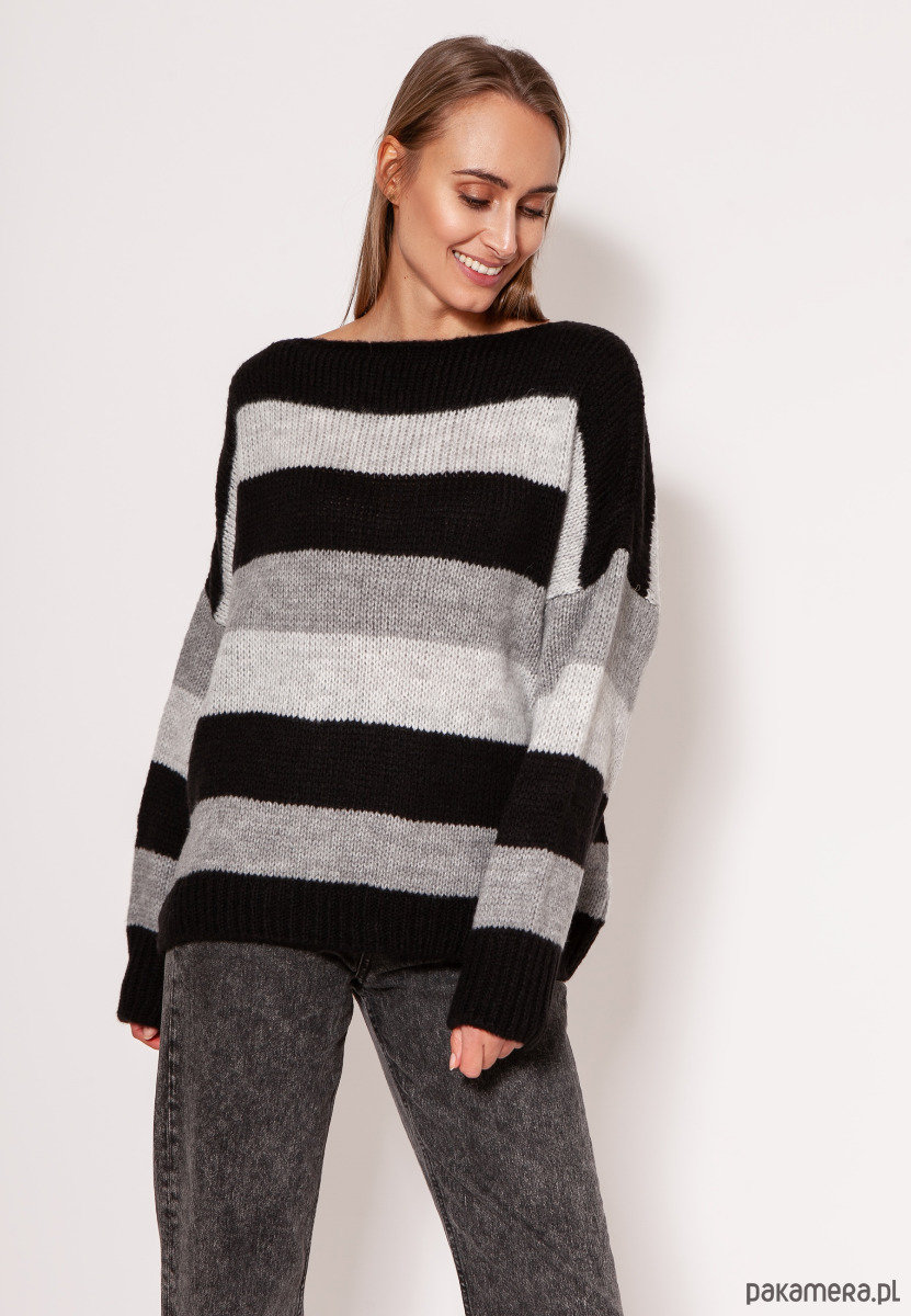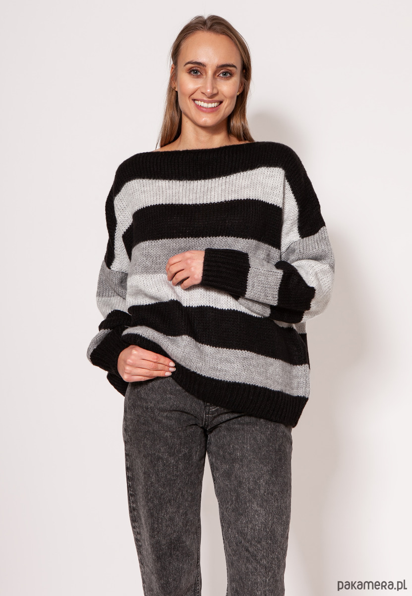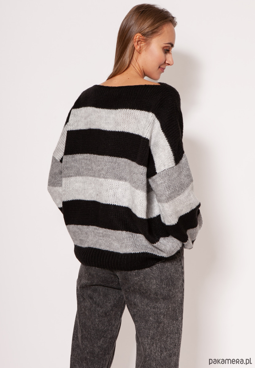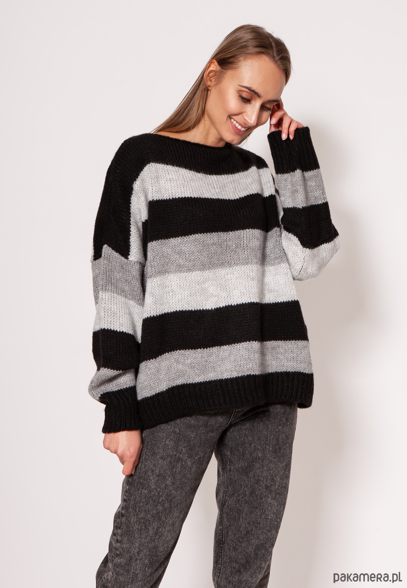 Oversize'owy sweter w paski - SWE299 szary/czarny/j.szary MKM