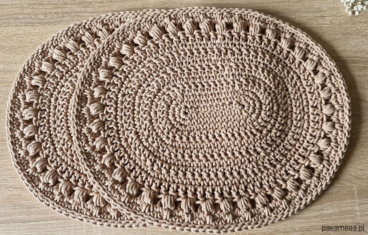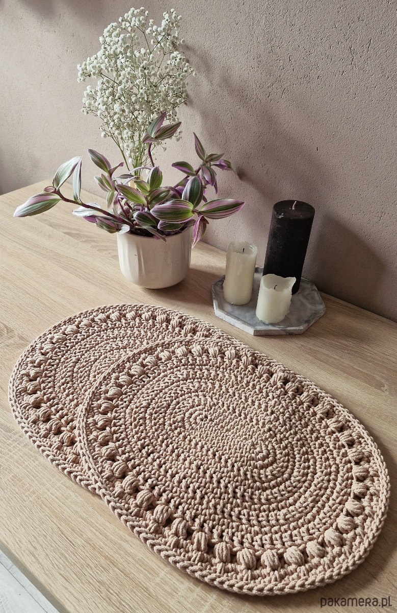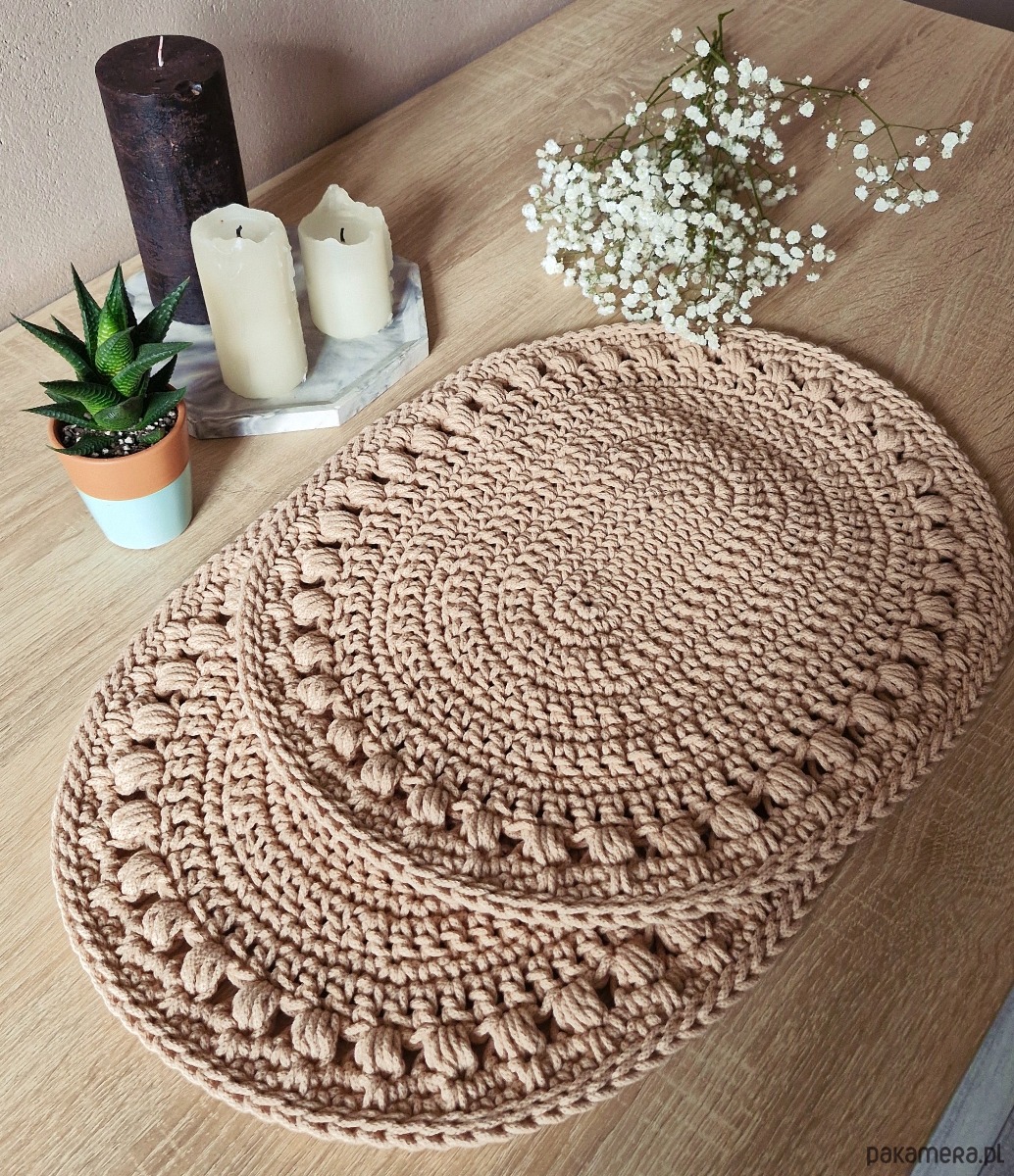 Owalne podkładki na stół ze sznurka - biszkoptowe