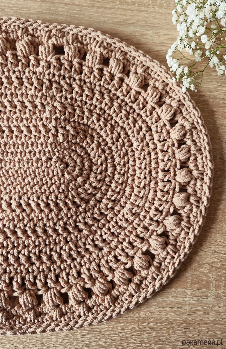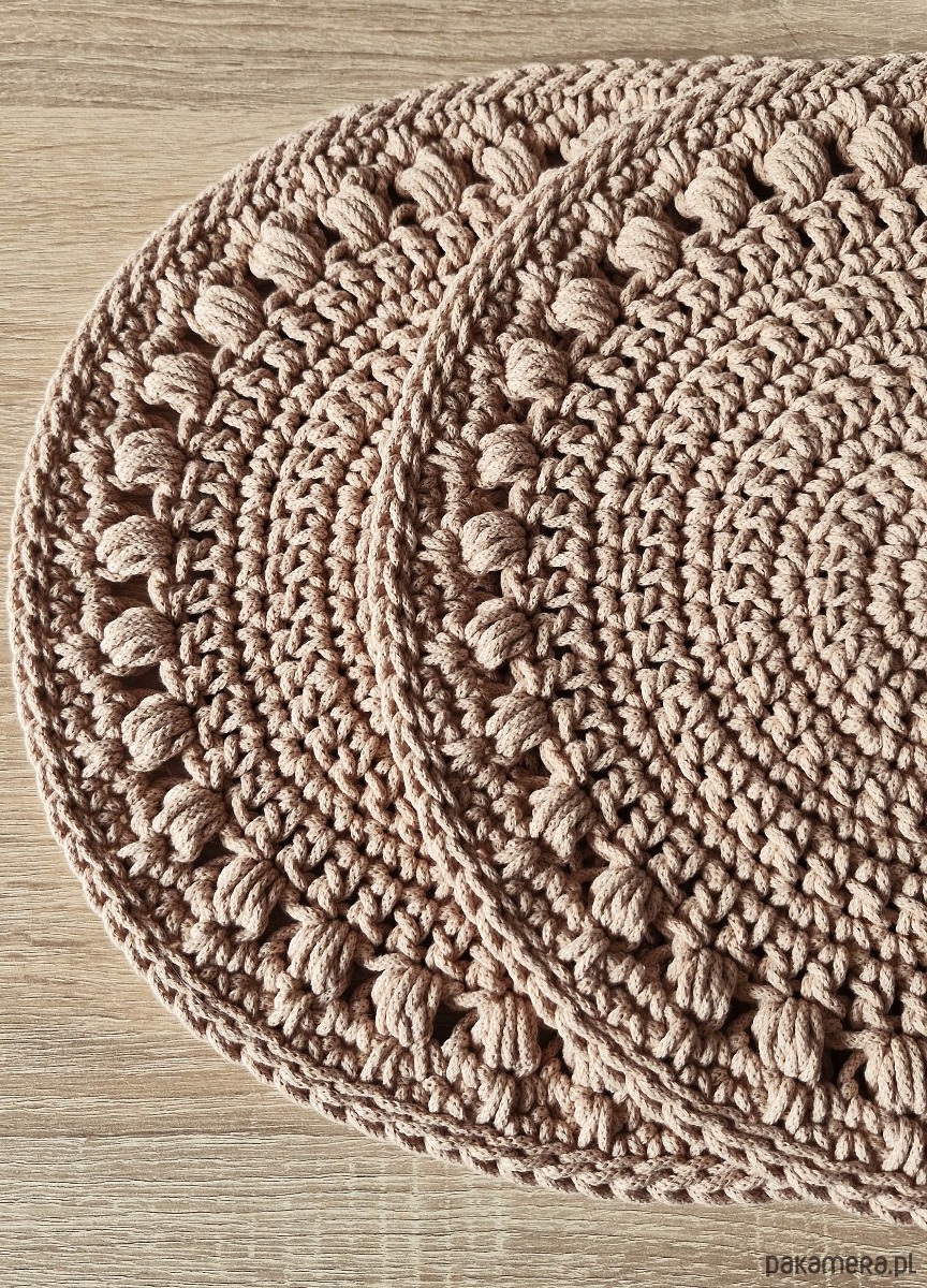 Wykonałam je na szydle ze sznurka bawełnianego 2,5 mm, przez co podkładki są subtelne, nie są przesadnie masywne i nieproporcjonalnie grube.