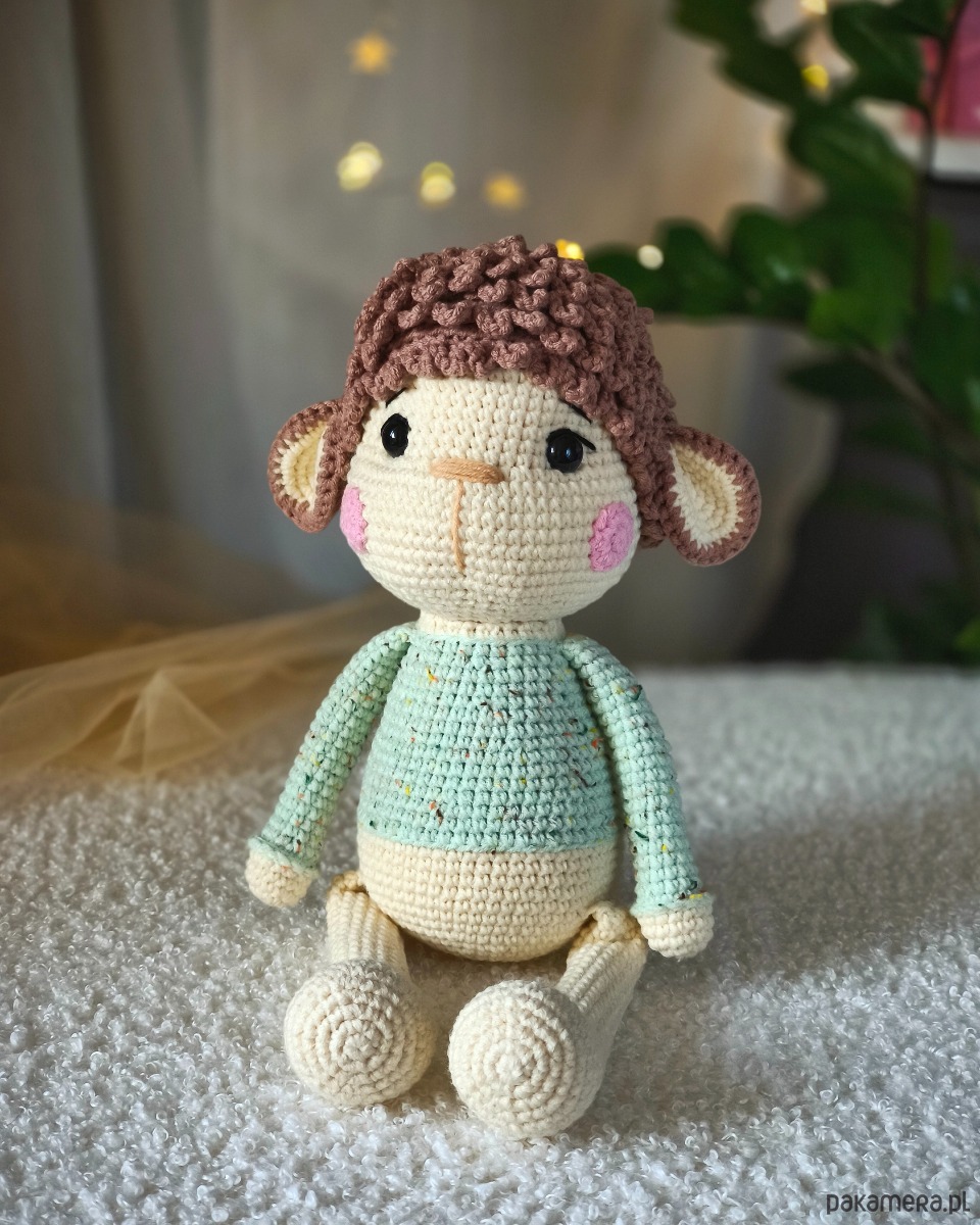 Owieczka wykonana z półbawełnianej włóczki z Certyfikatem Oeko-Tex.