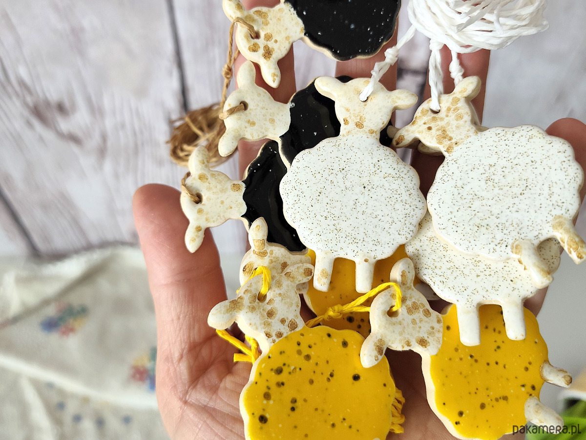 Owieczki ceramiczne zawieszki - na gałązkę, do stroika
