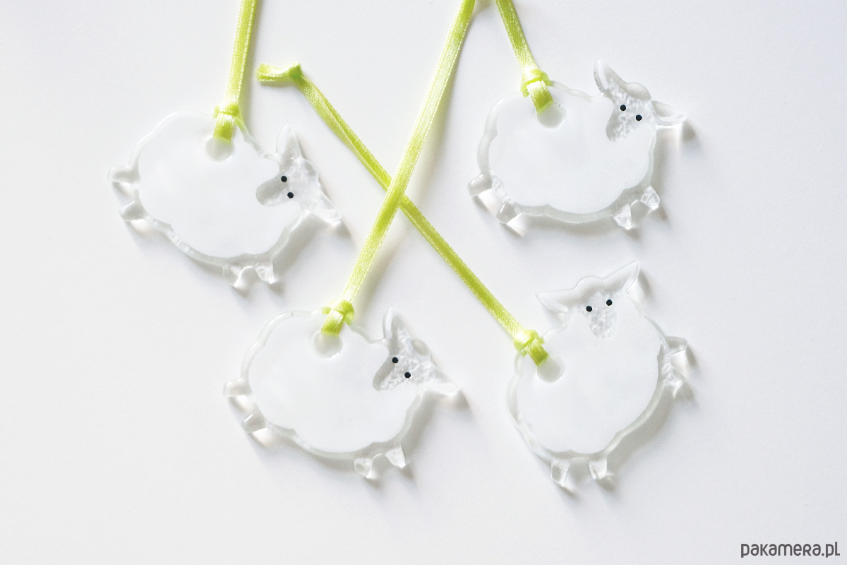 Zestaw czterech wiosenno-wielkanocnych zawieszek wykonanych ze szkła metodą fusingu.