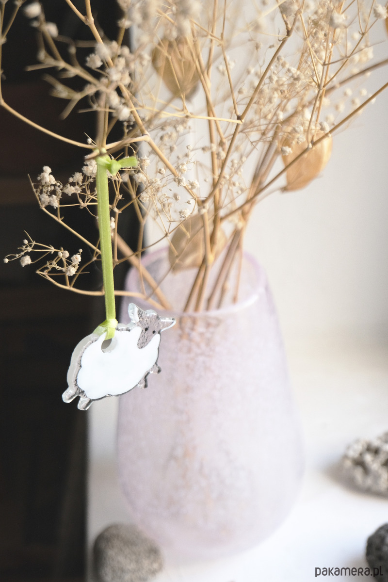 Ozdoby zawieszone są na satynowych tasiemkach. Jeśli chcesz aby ozdoby zawieszone były na wstążce innego koloru (różowa lub niebieska)- napisz do nas.