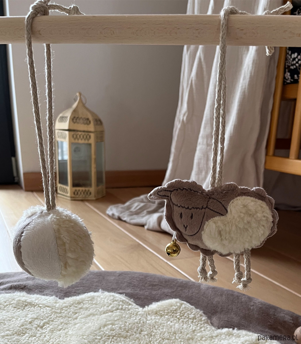 Urocza owieczka wyposażona w elementy interaktywne + drewniany stojak z zabawkami to zarówno uzupełnienie wystroju niemowlęcego pokoju jak i wspaniała zabawa i gimnastyka dla Twojego Malucha! Stojak tworzy przyjemną przestrzeń jednocześnie wspomagając przy tym wrodzoną zdolność do odkrywania i rozwój dziecka.