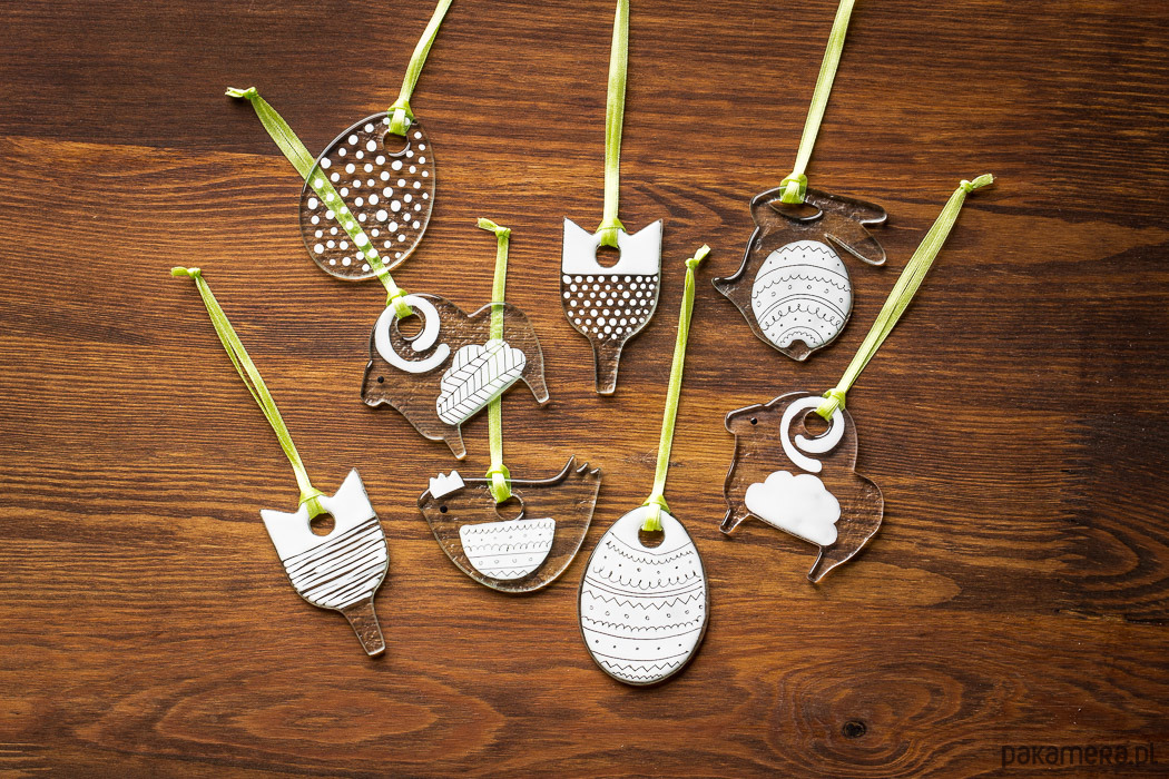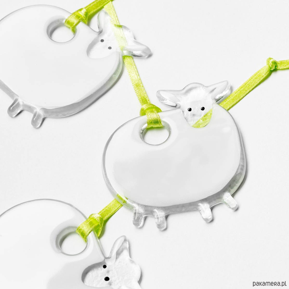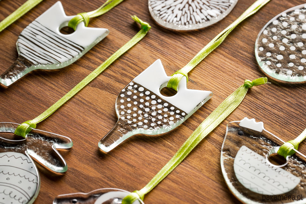 Zestaw trzech wiosenno-wielkanocnych zawieszek wykonanych ze szkła metodą fusingu.