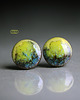 Ceramiczne okrągłe kolczyki w formie sztyftów, ręcznie wykonane z gliny kamionkowej, jednostronnie szkliwione mieszanką zielonych szkliw z efektem plamek, na antyalergicznych sztyftach w kolorze srebrnym. Średnica ok. 9mm. Polecam