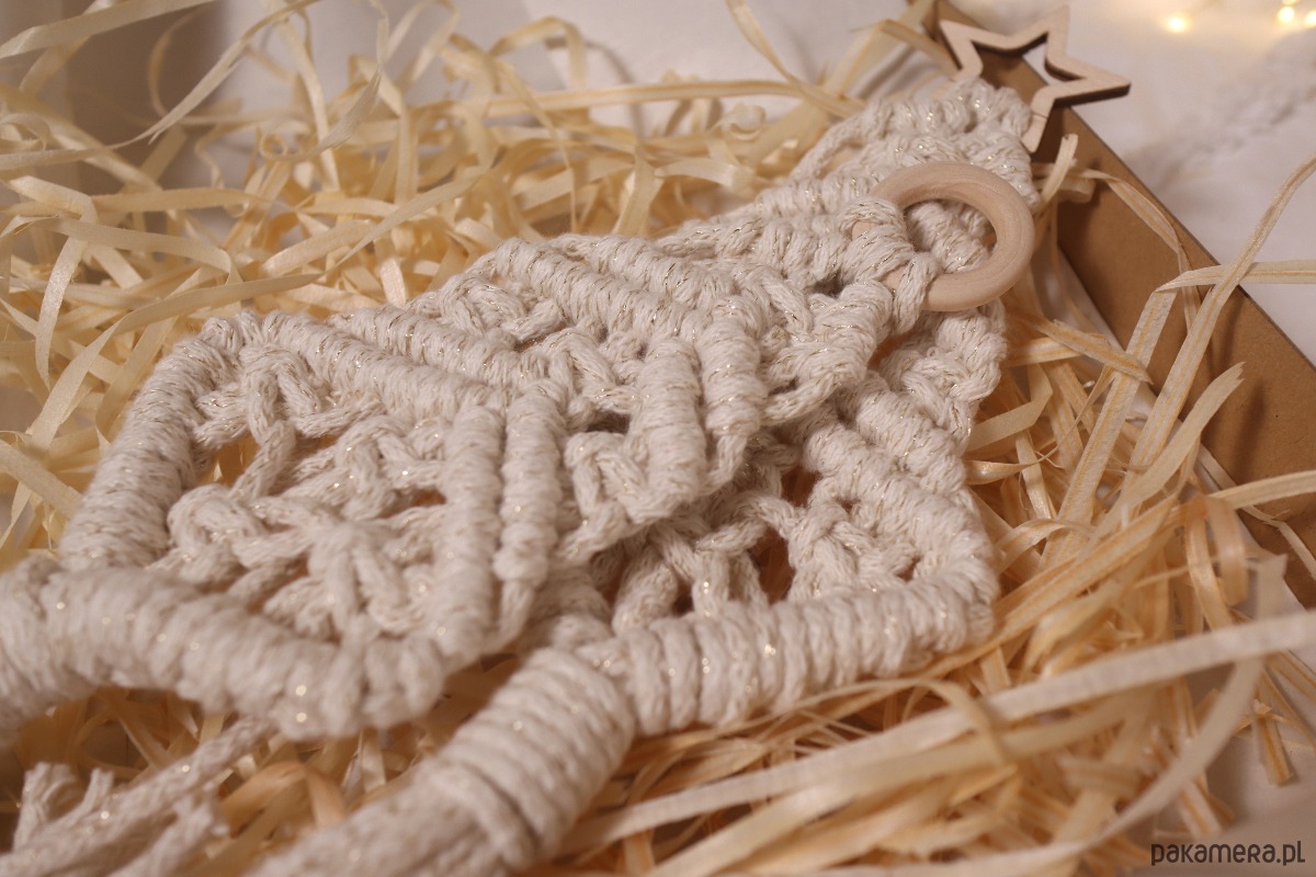 Ozdoba Bożonarodzeniowa - zestaw makramowych choinek