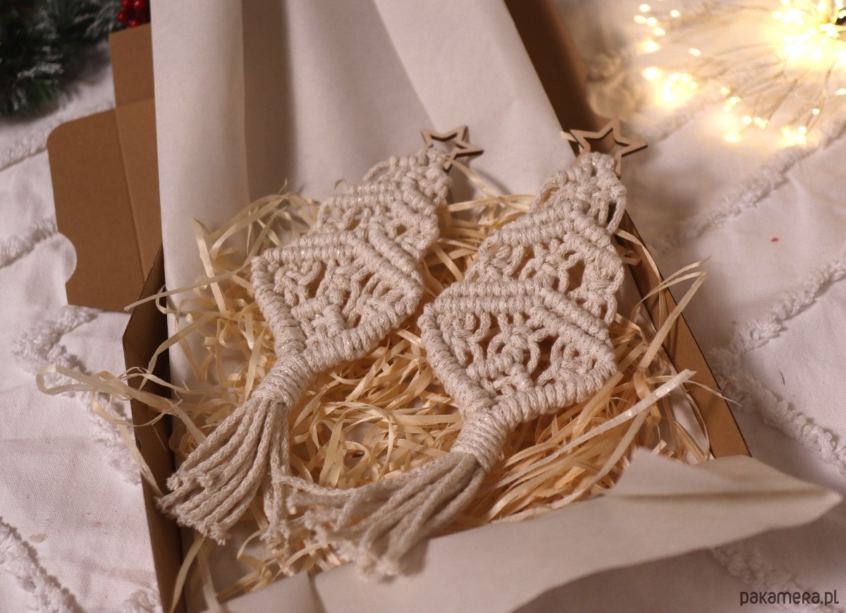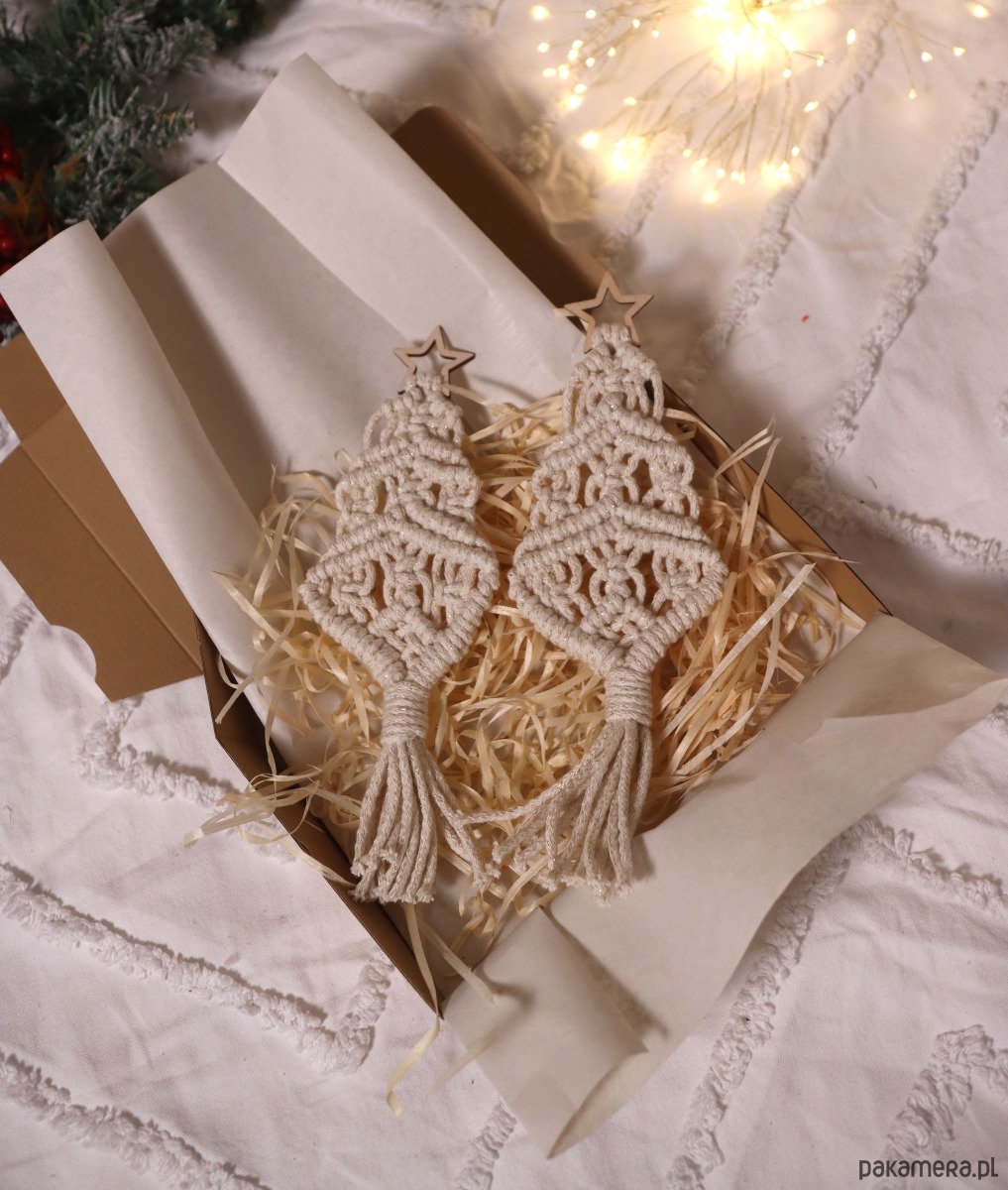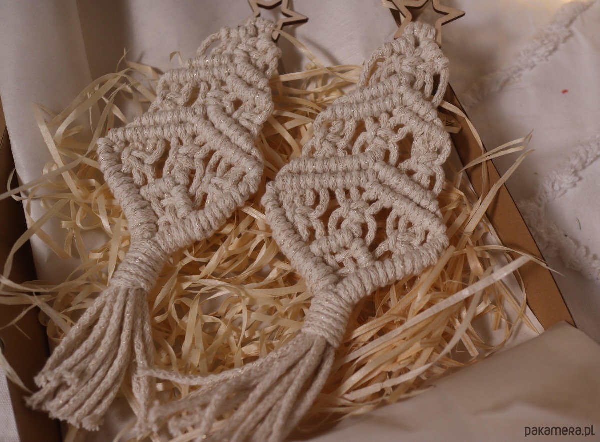 Ozdoba Bożonarodzeniowa - zestaw makramowych choinek