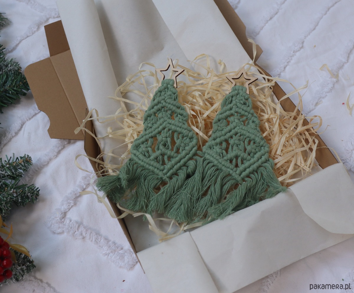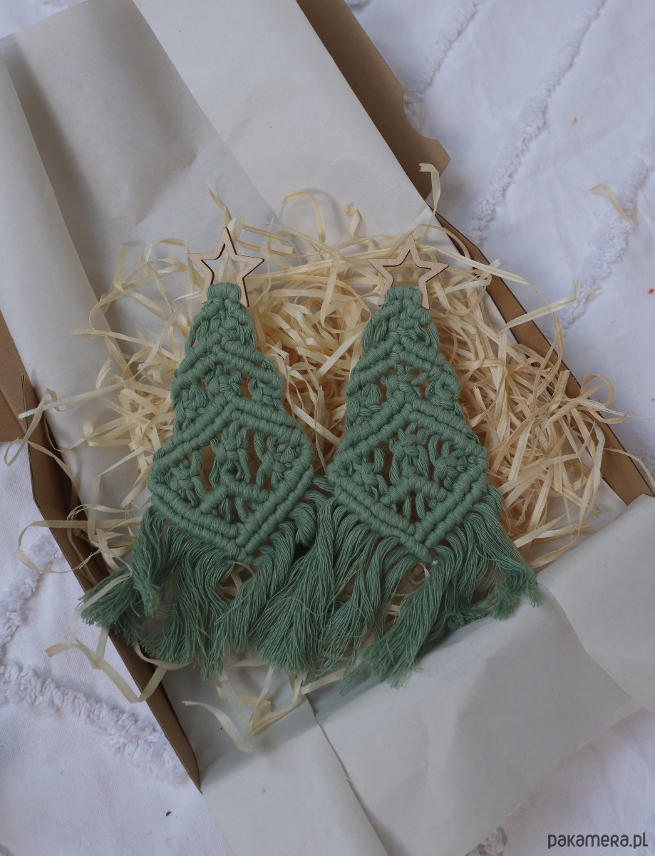 Ozdoba Bożonarodzeniowa - zestaw makramowych choinek