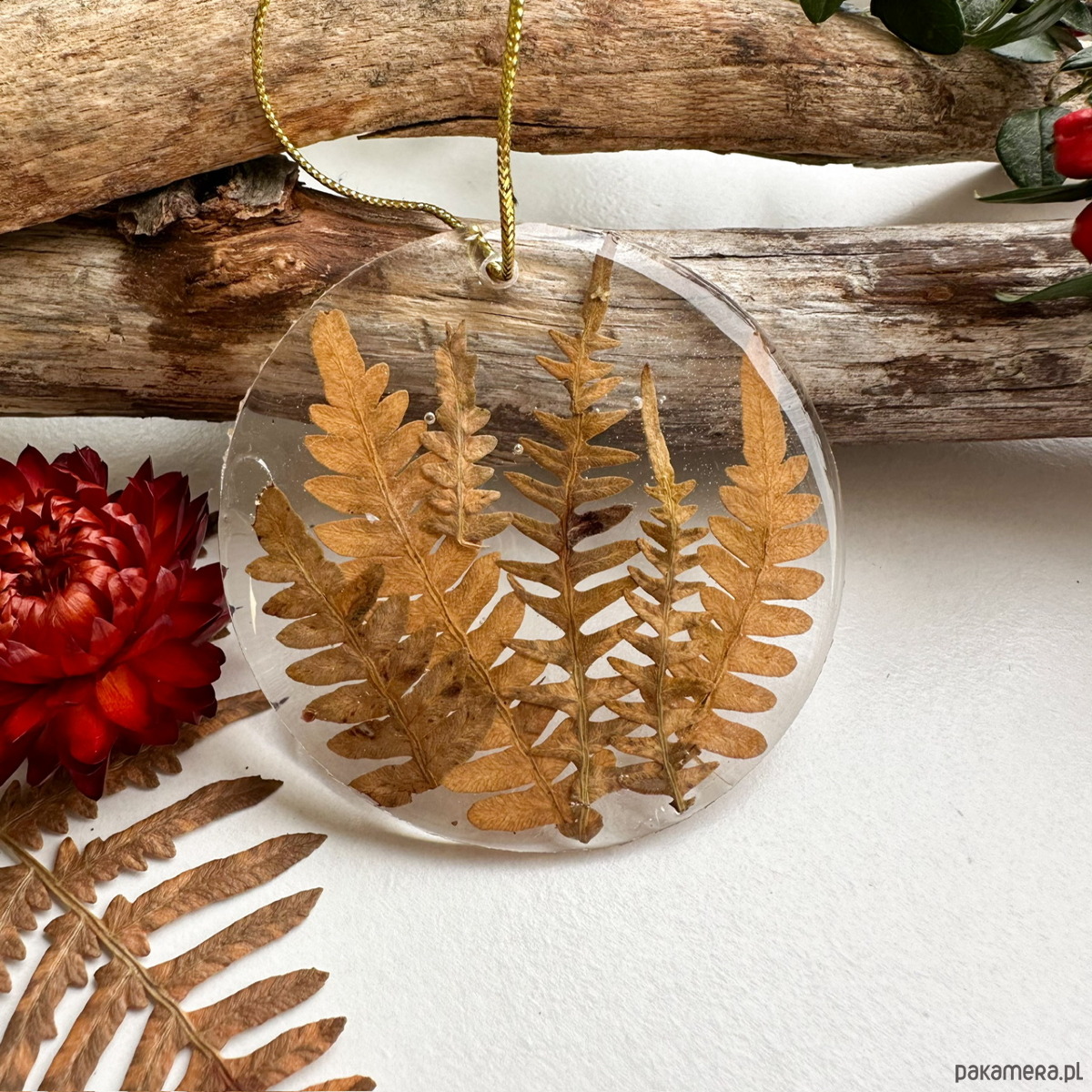 Ozdoba choinkowa/ bombka - brązowe paprocie