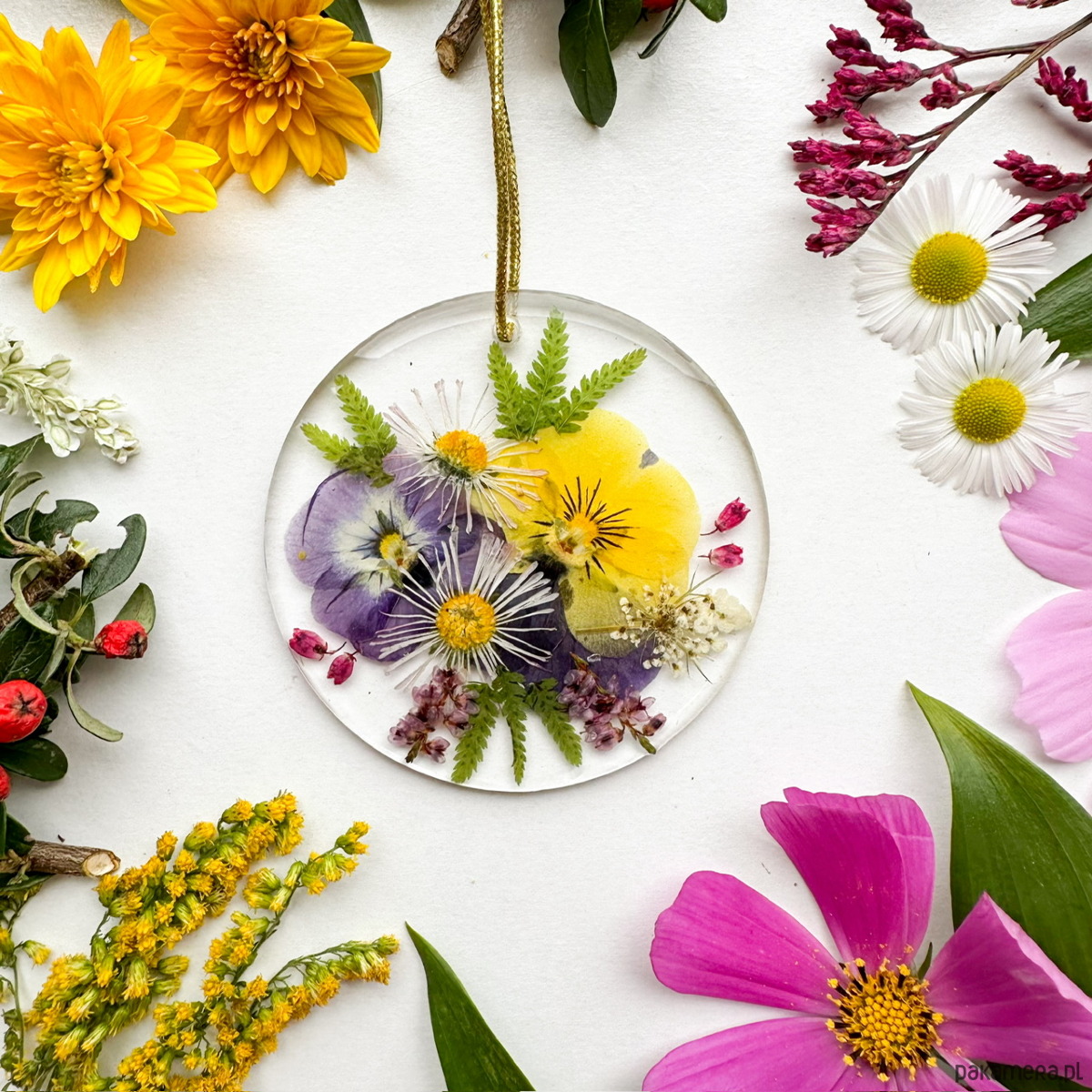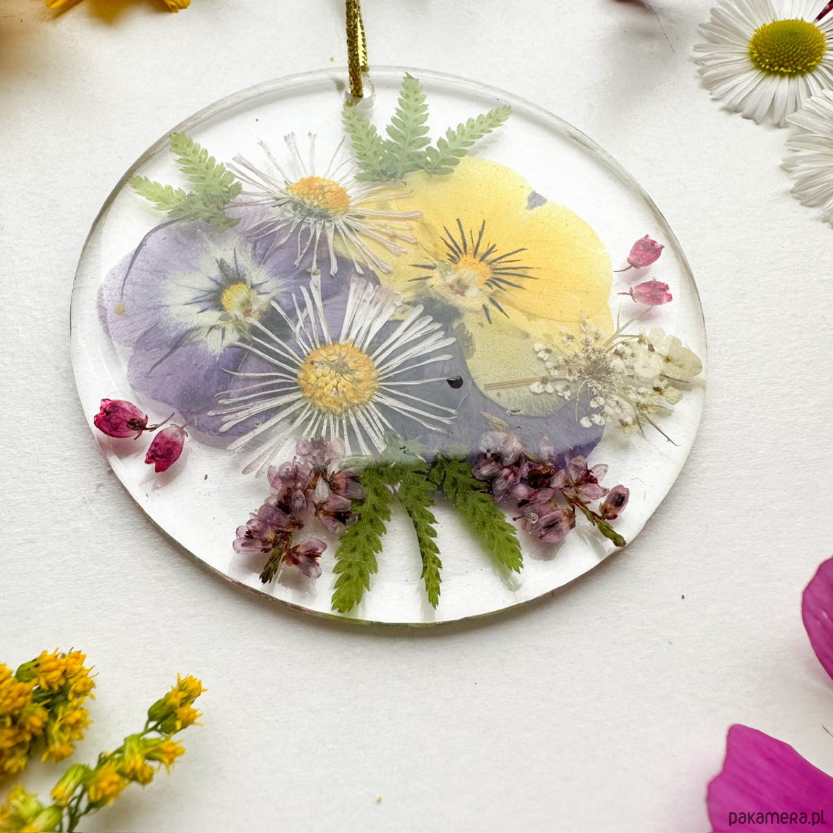 Zatopione w żywicy prawdziwe trawy, liście i rośliny łąkowe tworzą botaniczną kompozycję w stylu boho. To idealny upominek dla osób, które kochają naturę, oryginalne dodatki i unikatowy styl.