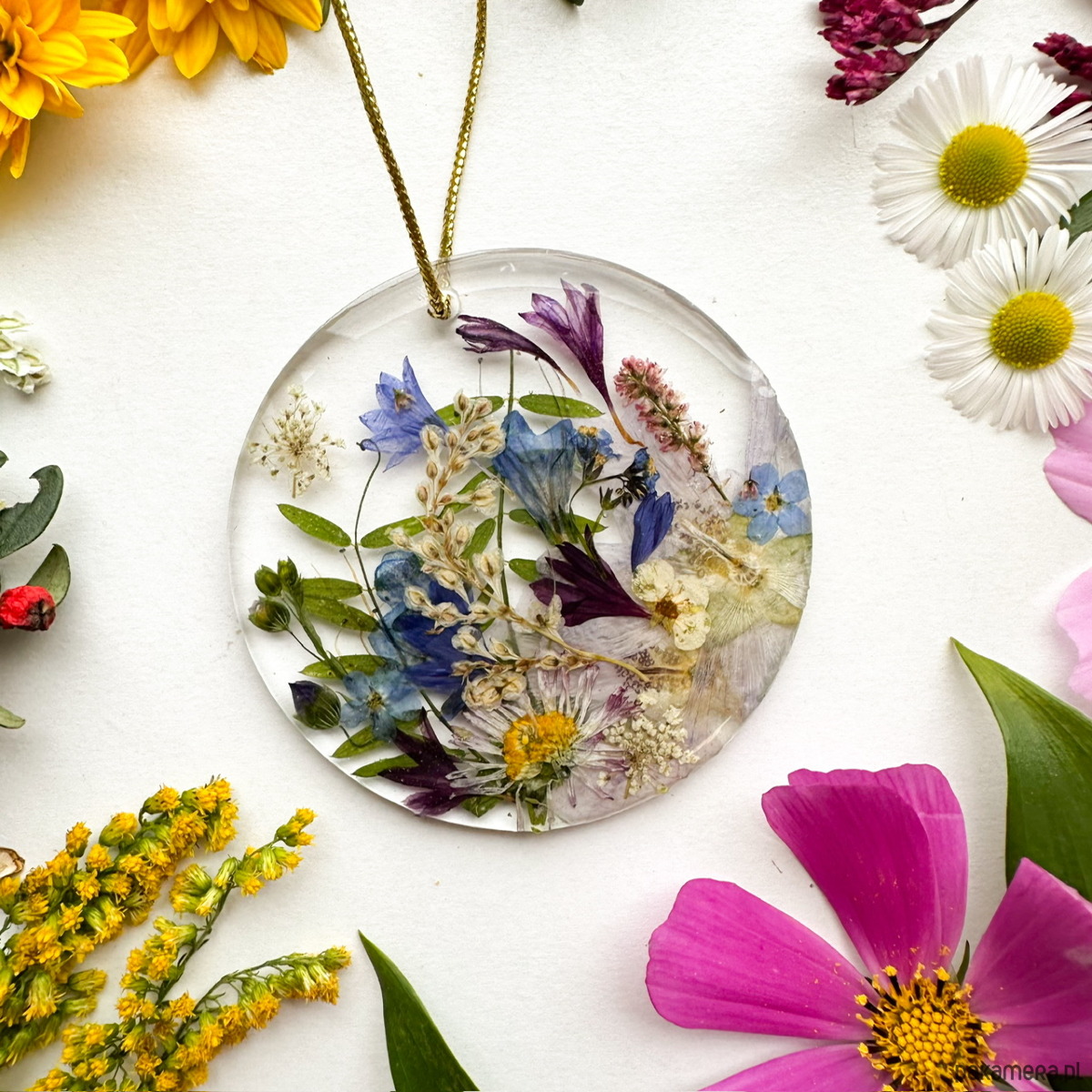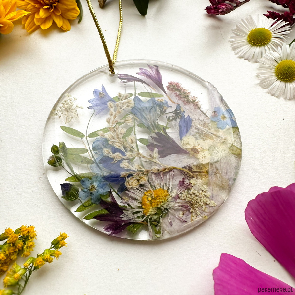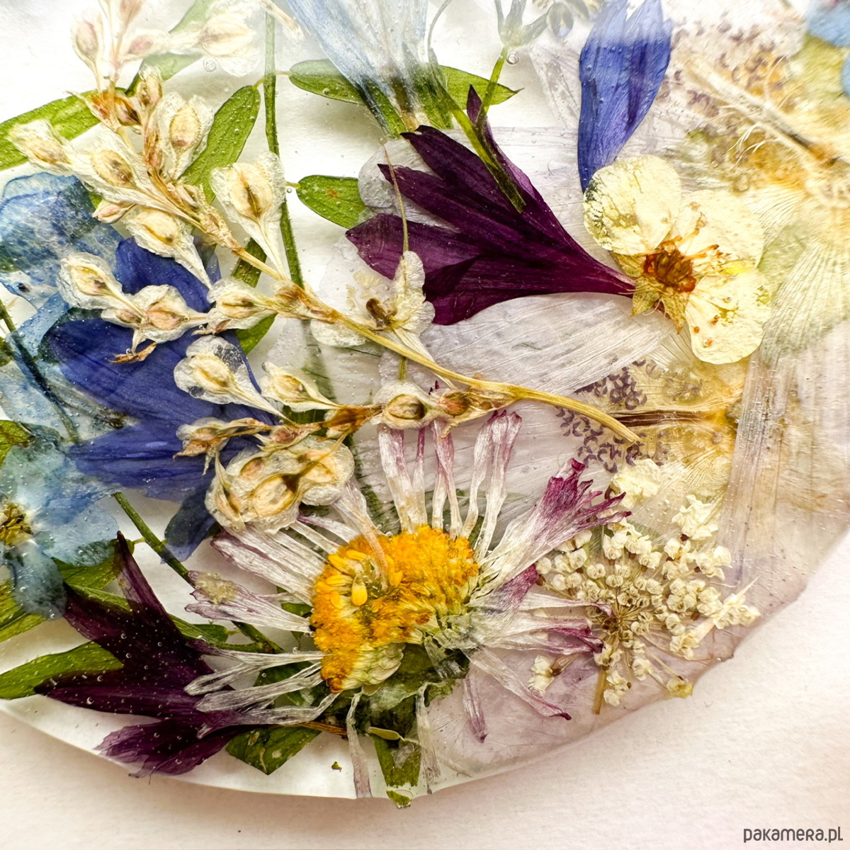 Zatopione w żywicy prawdziwe trawy, liście i rośliny łąkowe tworzą botaniczną kompozycję w stylu boho. To idealny upominek dla osób, które kochają naturę, oryginalne dodatki i unikatowy styl.