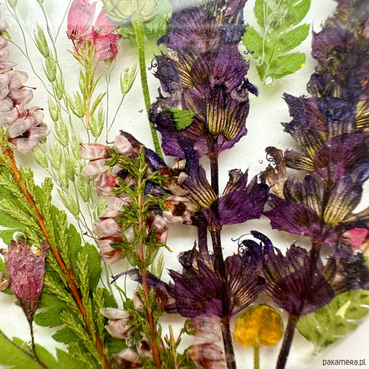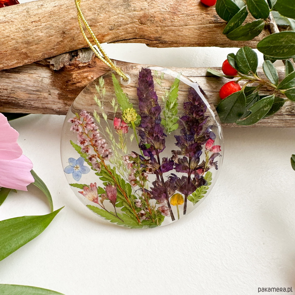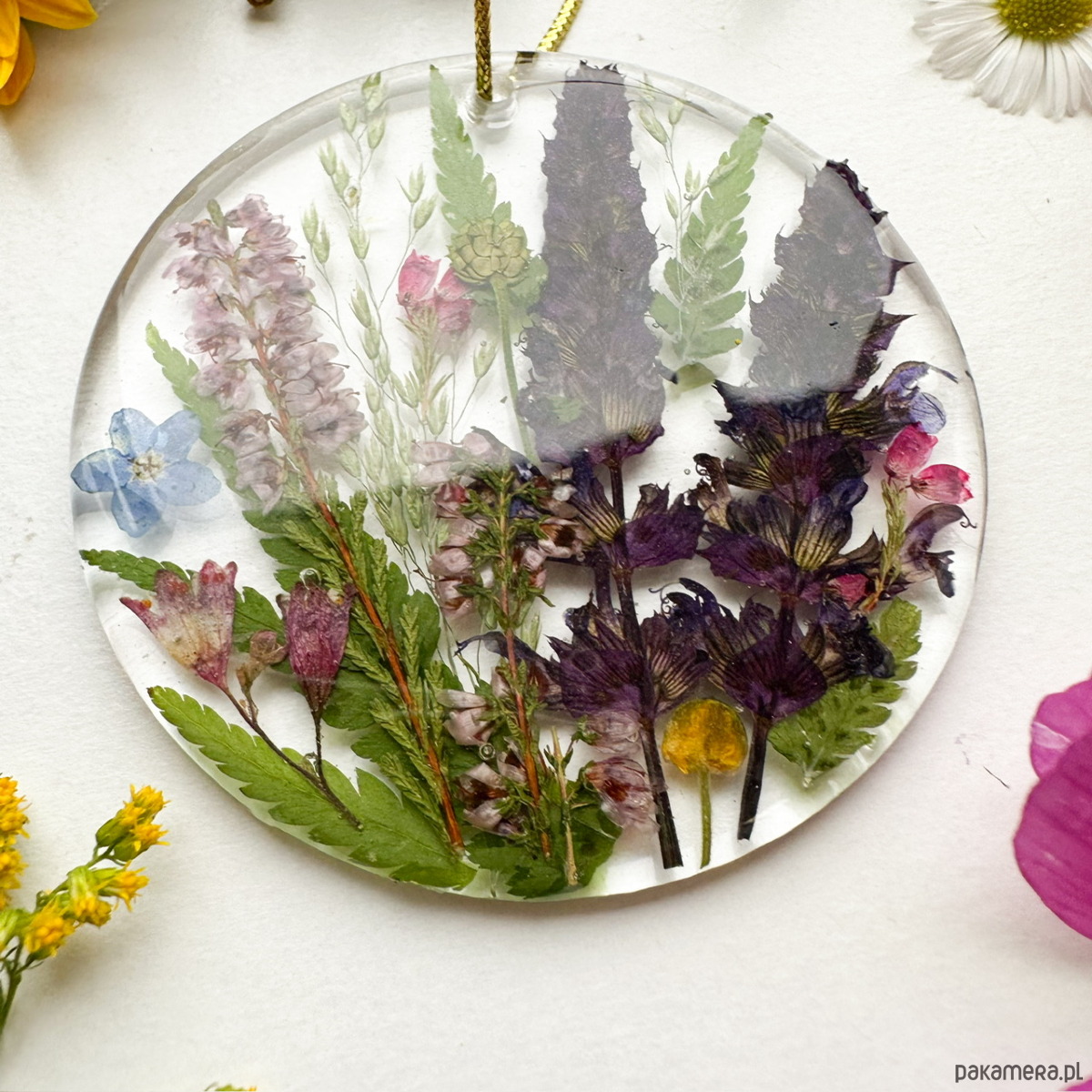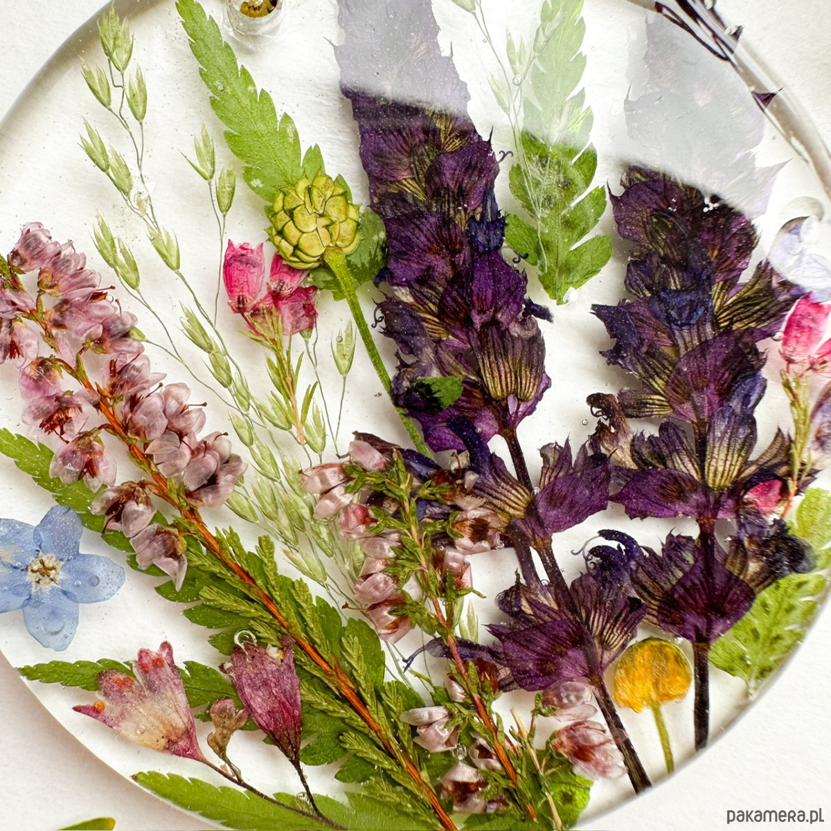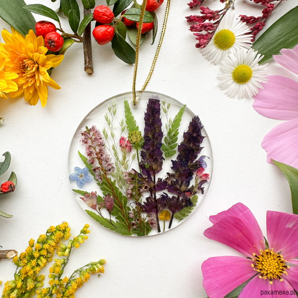 Zatopione w żywicy prawdziwe trawy, liście i rośliny łąkowe tworzą botaniczną kompozycję w stylu boho. To idealny upominek dla osób, które kochają naturę, oryginalne dodatki i unikatowy styl.
