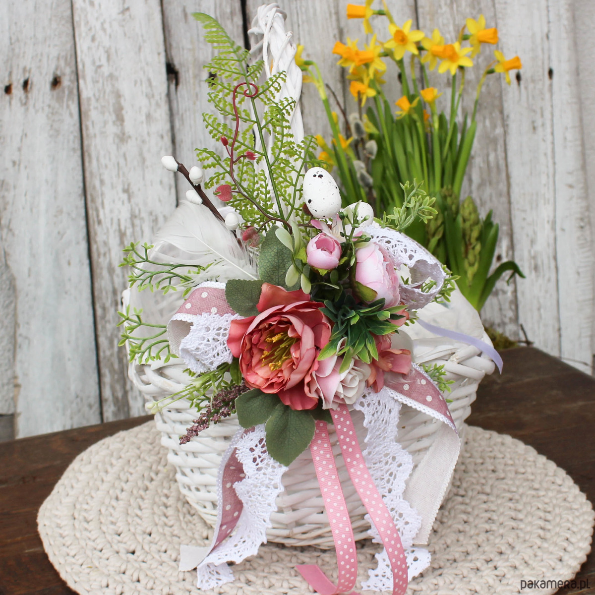 Wielkanocna, kwiatowa ozdoba do przymocowania na koszyczek.
