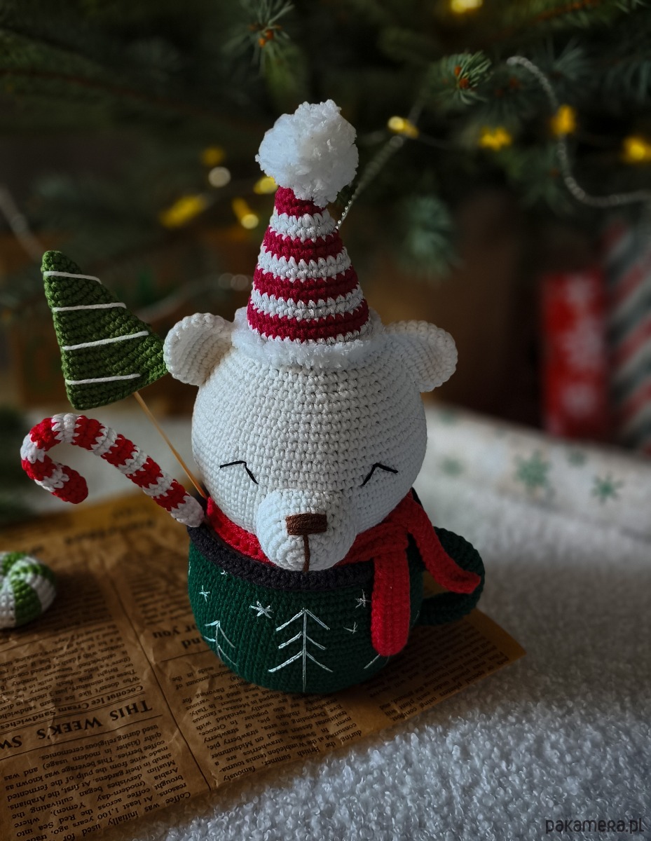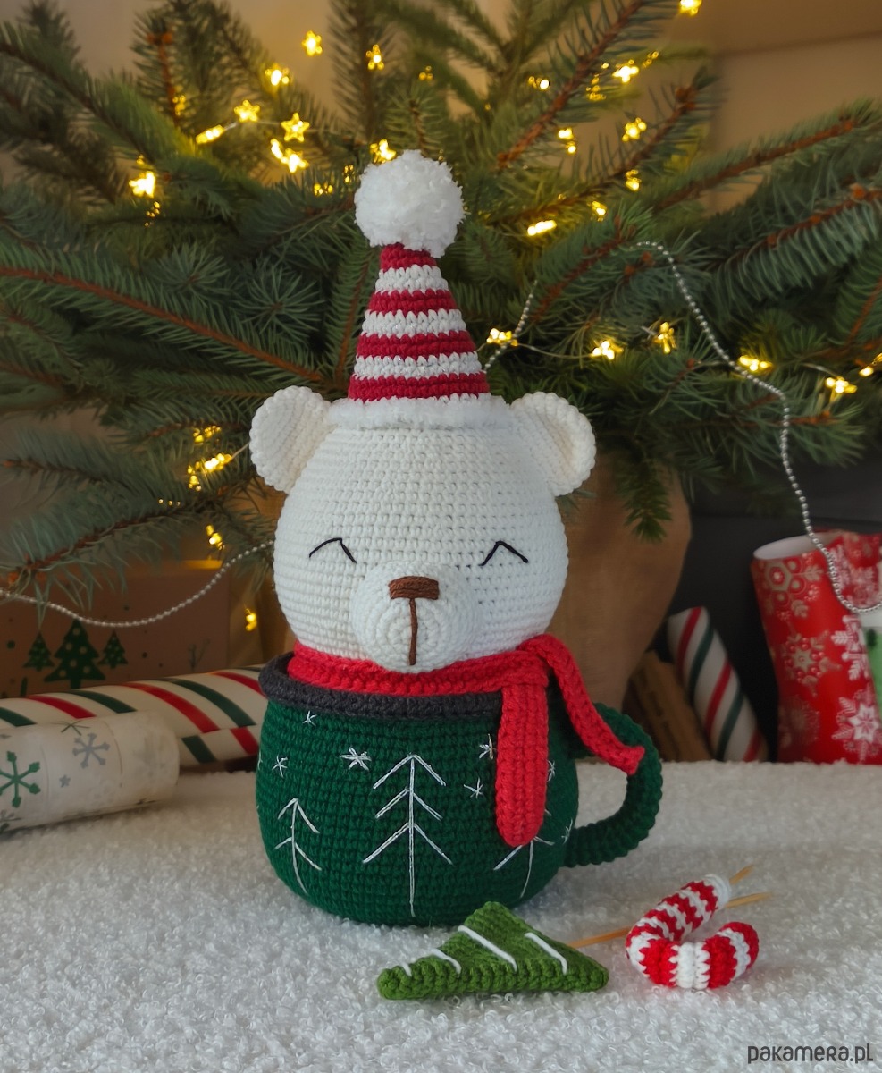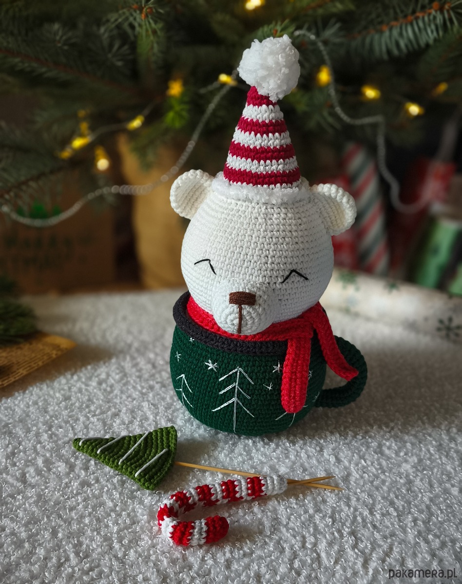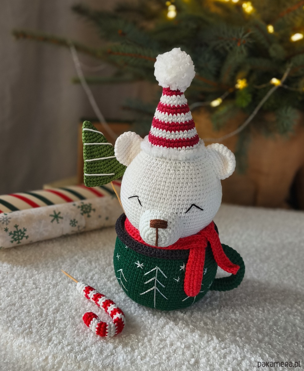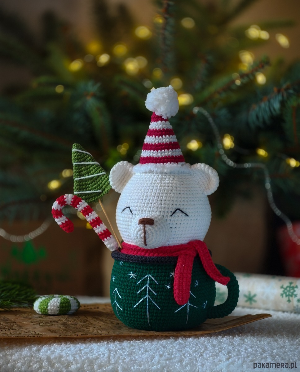 Świąteczny miś w kubku wykonany na szydełku to doskonały i unikalny prezent na Święta Bożego Narodzenia dla całej rodziny czy przyjaciół. To świetny prezent do dekoracji wnętrz lub unikalną dekoracją do biura czy na półkę z książkami.