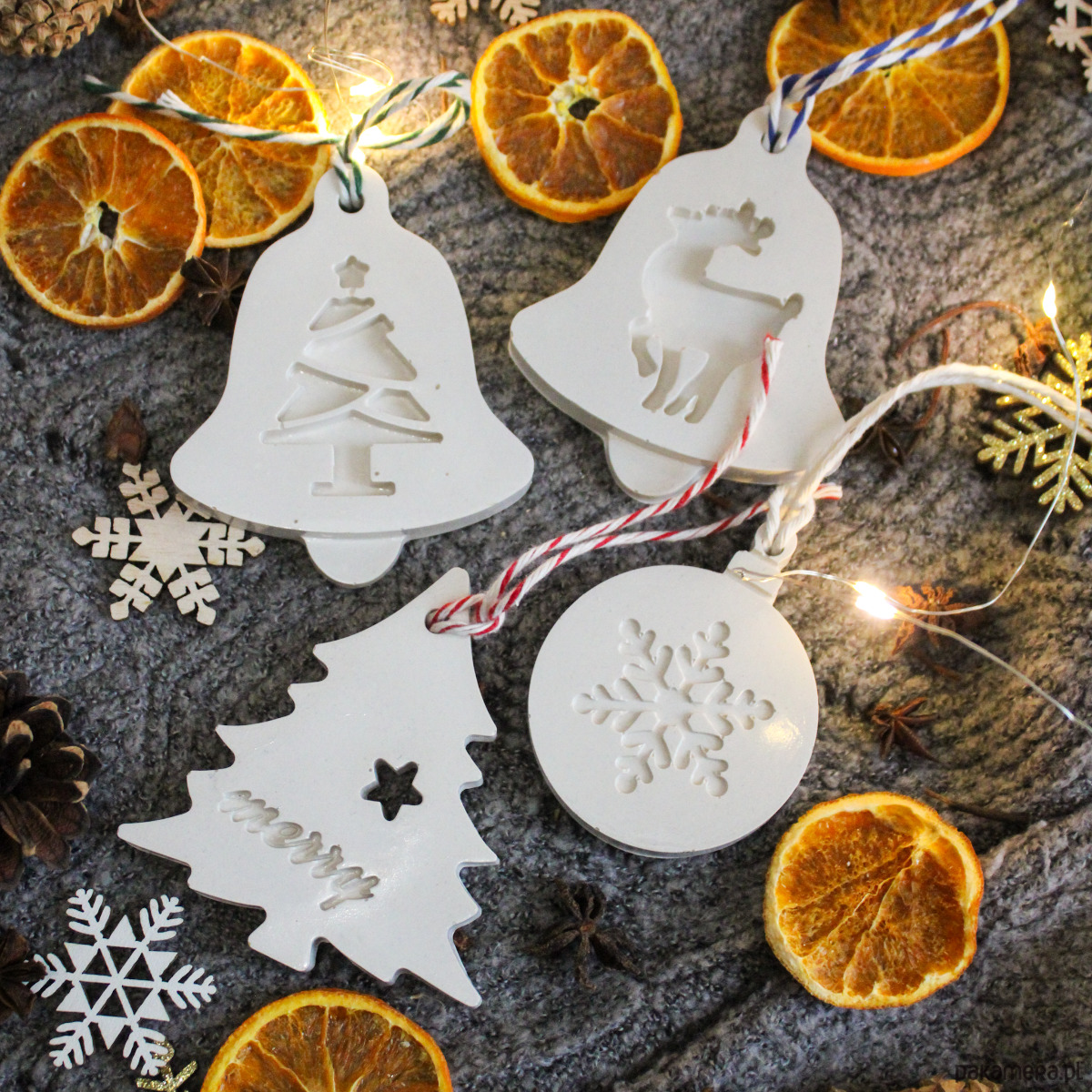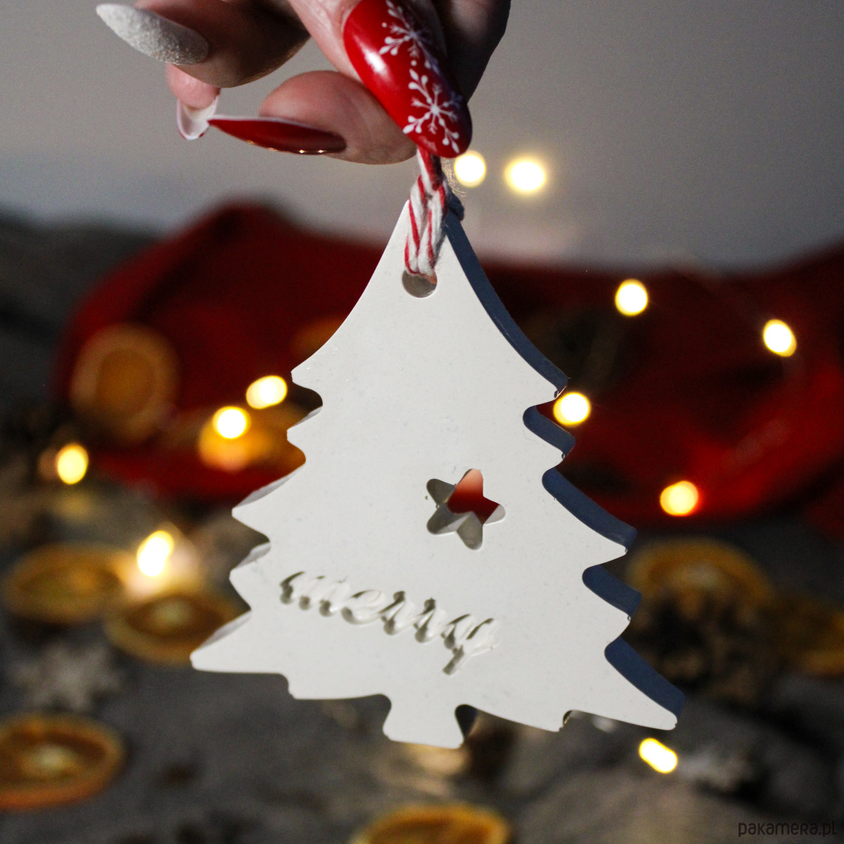 Ręcznie wykonana zawieszka na choinkę z gipsu polimerowego