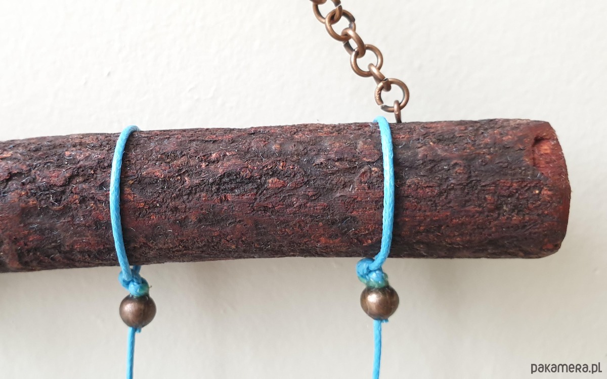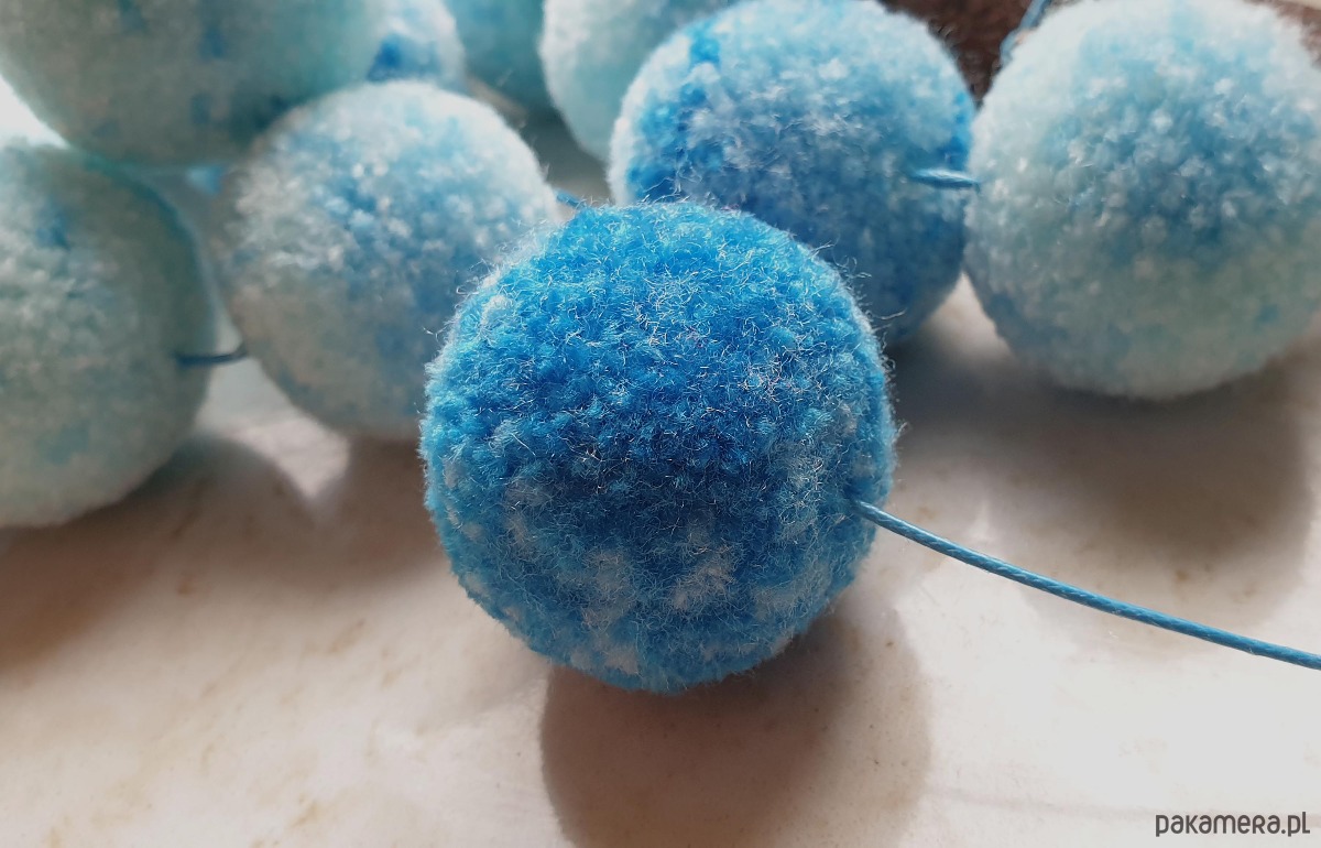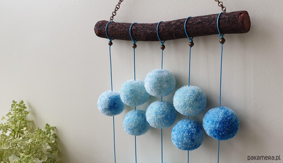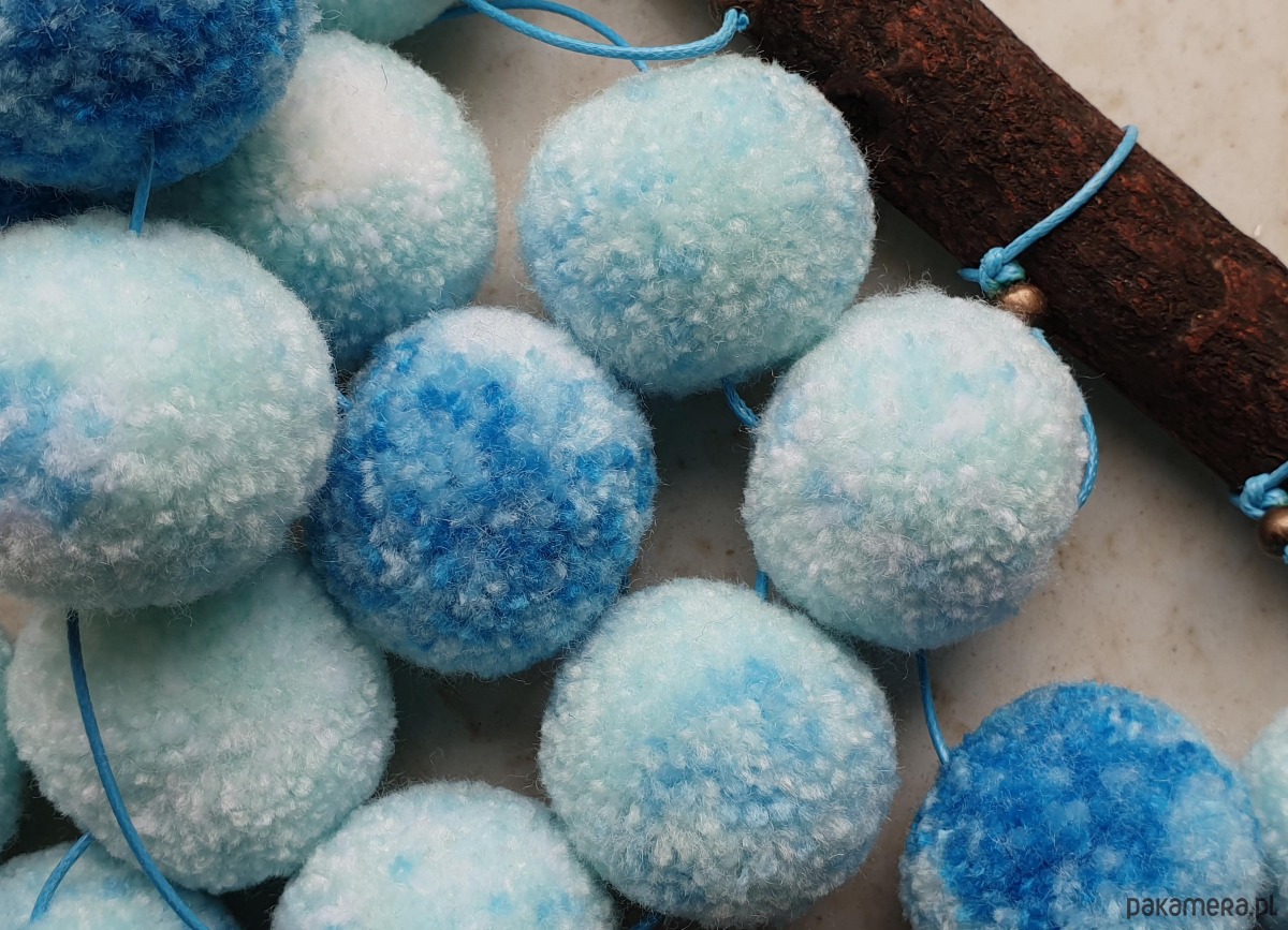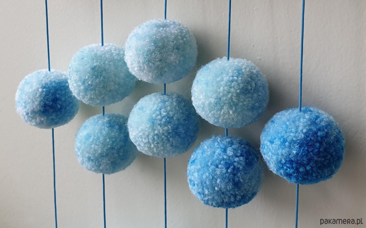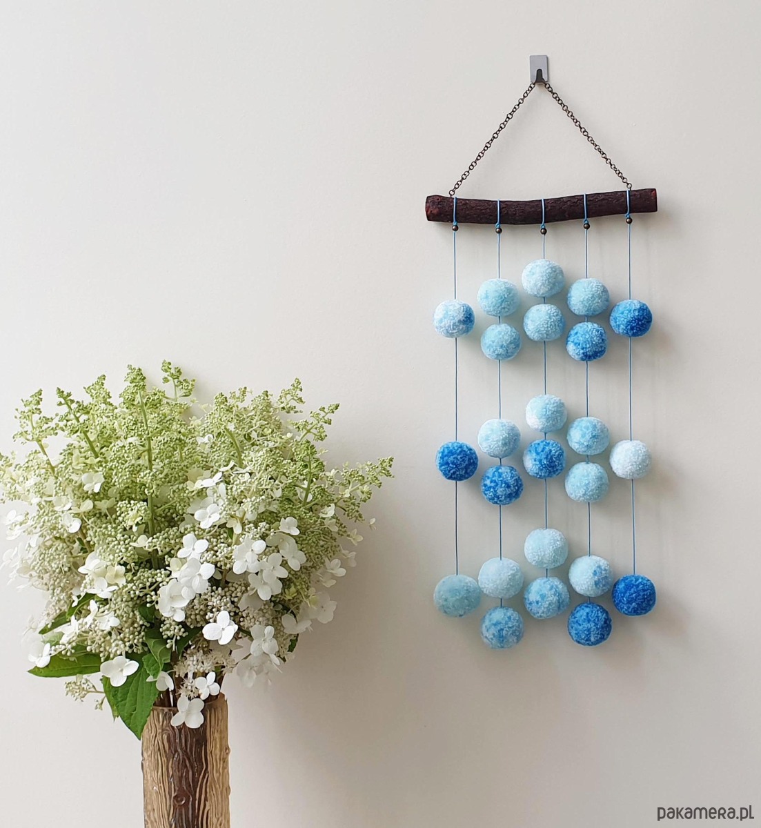 Ozdoba na ścianę z pomponów - błękit nieba.