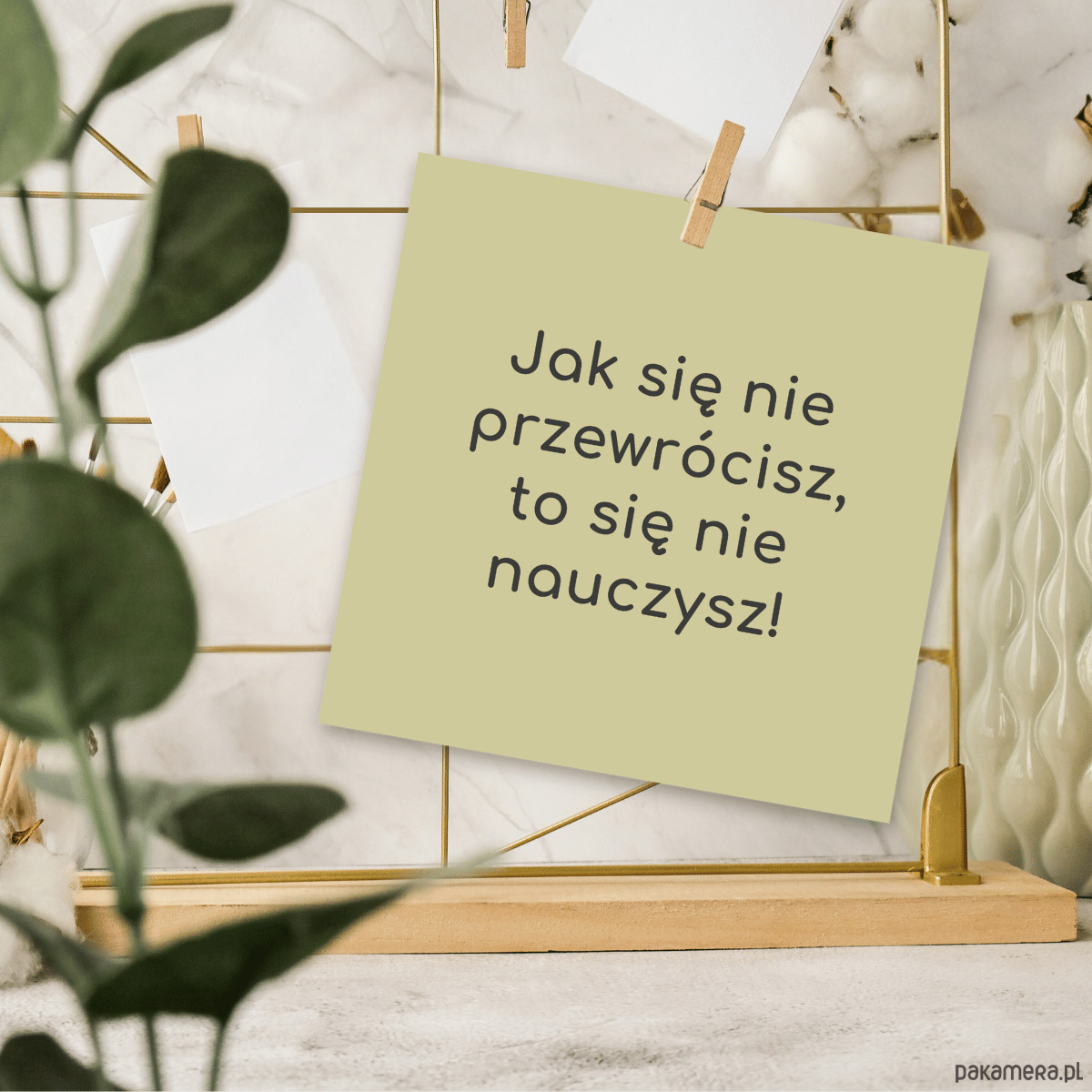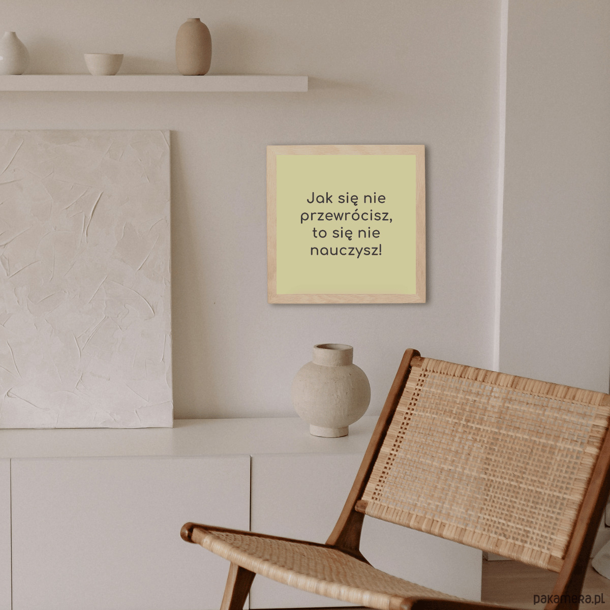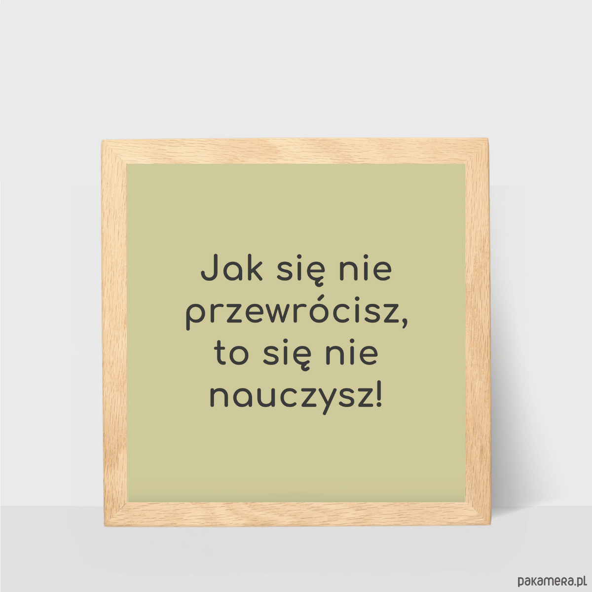Jako że czasy trudne nastały, motywacyjne treści modne się stały. Każdy ich szuka, otacza się nimi namiętnie, by podnieść morale wymęczone doszczętnie. Stąd powstał plakat minimalistyczny, klasyczny i dzięki temu nieprzeciętnie estetyczny. Mądrość babciną dumnie prezentuje, czym jeszcze większą wartość zyskuje. Pasuje do każdego, czy młodzik, czy człowiek dojrzały, bo uczy się całe życie i ciągle niedoskonały. Niechaj ten plakat w biurze, pokoju dziecka, czy w szkolnej klasie zawieszony zostanie, bo tam idealnie spełni swoje moralizatorskie zadanie. W formie kwadratu, w przyjaznym 20×20 cm formacie, można powiesić na ścianie lub położyć na blacie.
