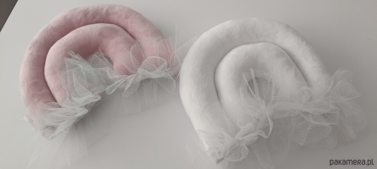 Idealny pomysł na drobny prezent dla dziecka np z okazji narodzin, urodzin. Piękna ozdoba do pokoju a także gadżet do zdjęć. Wykonujemy ją z bawełny lub minky, velvetu. Chmurki mogą być tiulowe lub z materiału z którego będzie tęcza. Tęcza może być płaska jak na zdj lub wypchana. Jeśli tęcza ma być wyłącznie ozdobą na ścianie montujemy sznureczek do zawieszenia. Kolory do uzgodnienia. Wystarczy nspisać mniej więcej jaki a my wyślemy dostępne odcienie. Na tęczy możemy umieścić krótki napis, imię jednak ze względu na rozmiar prosimy liczyć się z tym że będzie on mały.