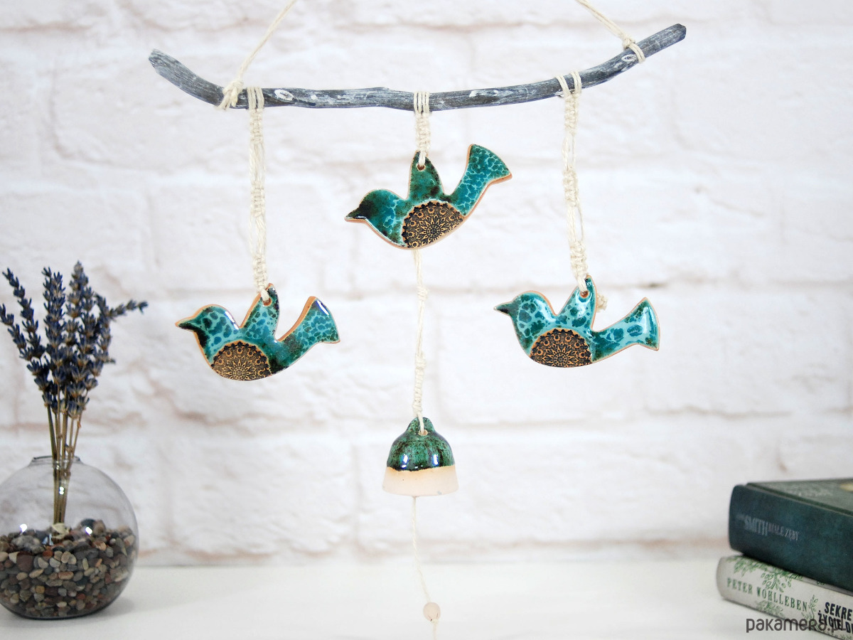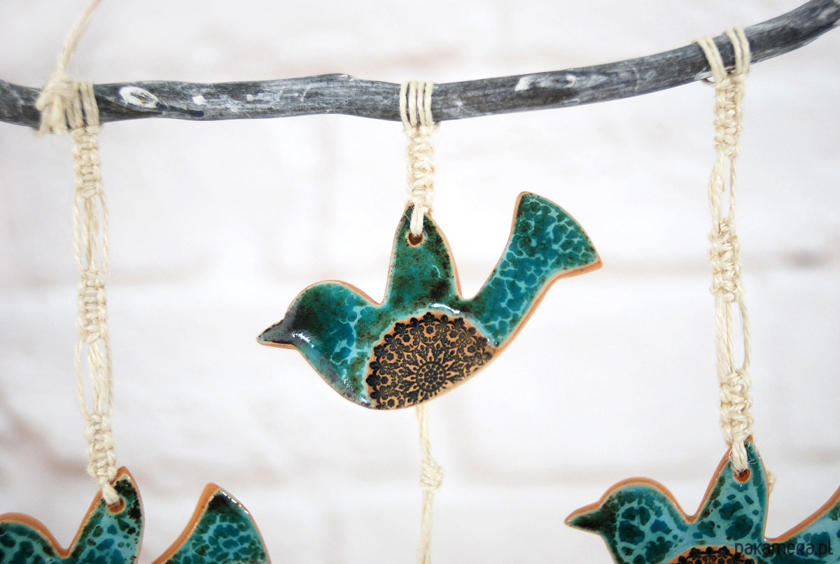 Ozdoba ścienna boho - turkusowe ptaki w locie