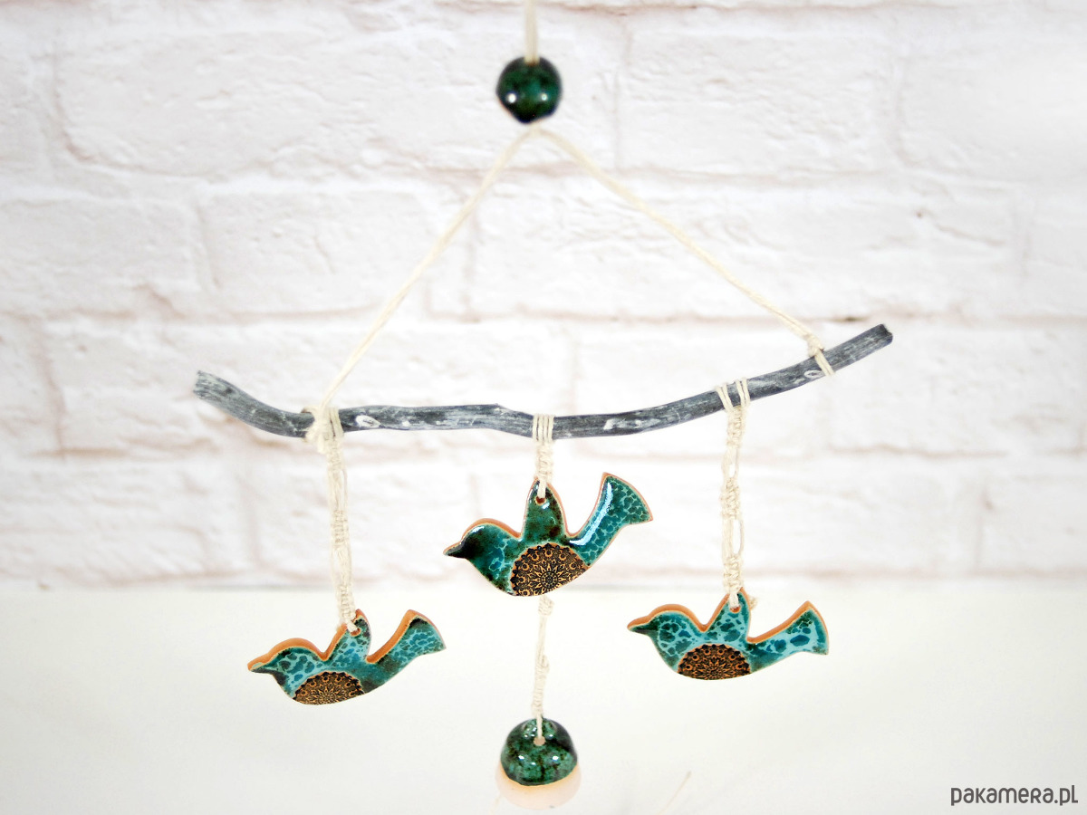 W komplecie: 3 sztuki ptaszków wraz z naturalnymi sznureczkami do zawieszenia.