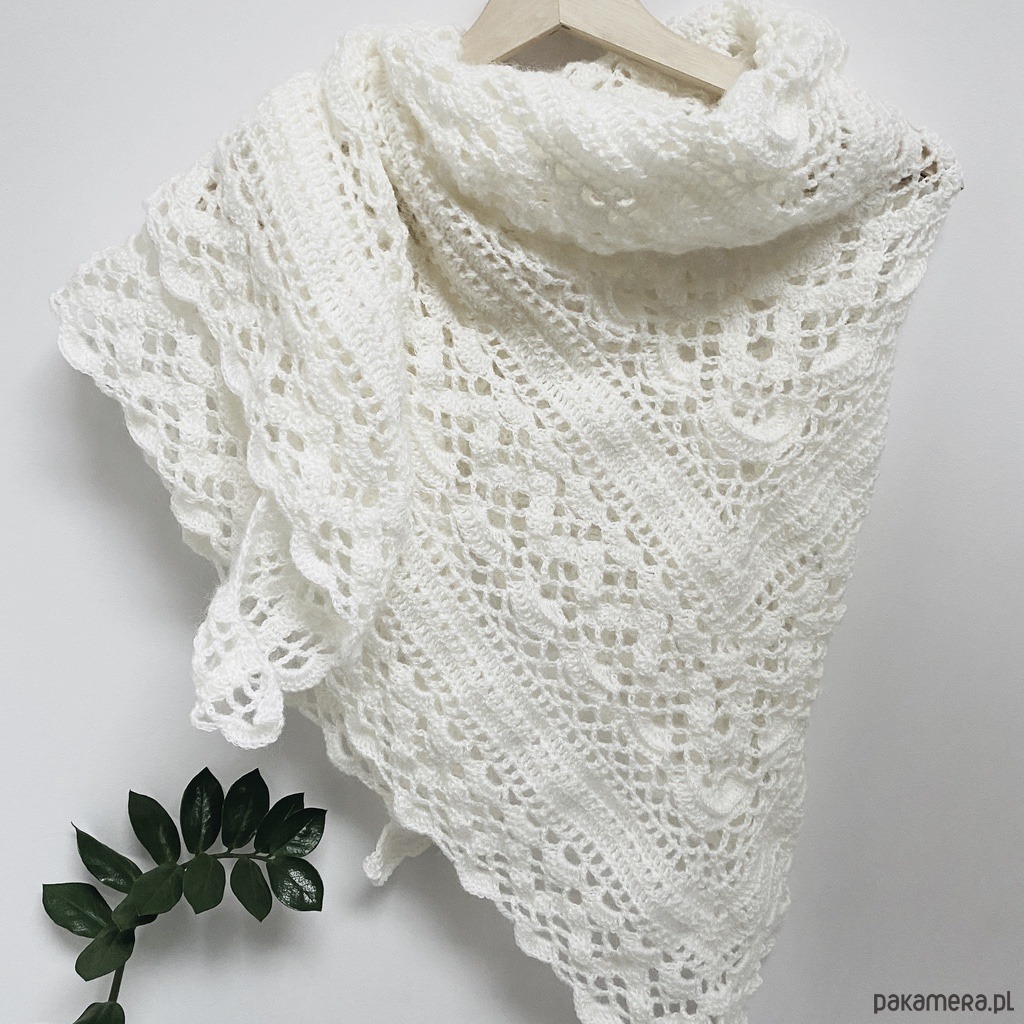 Chusta ślubna ręcznie robiona na szydełku w białym kolorze