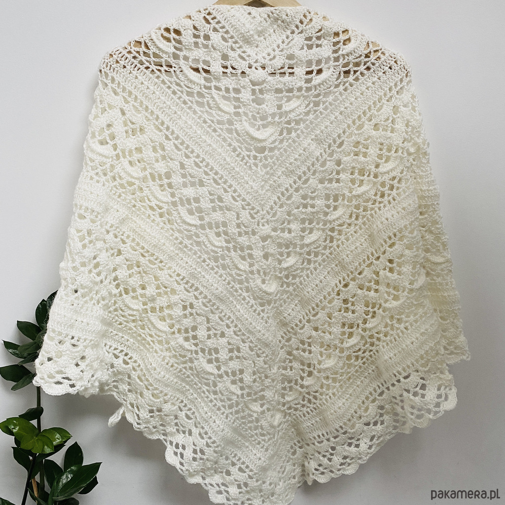 Chusta ślubna ręcznie robiona na szydełku w kolorze ecru