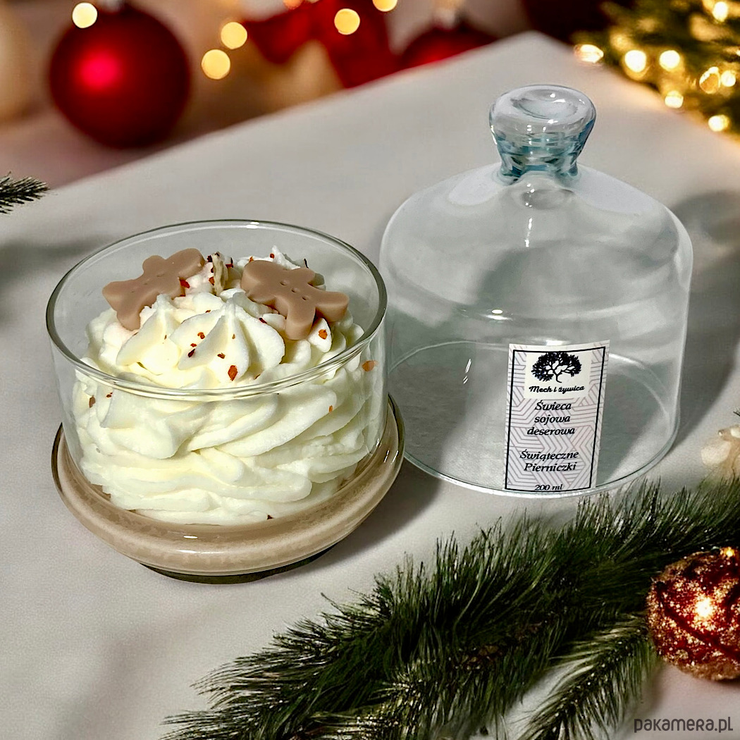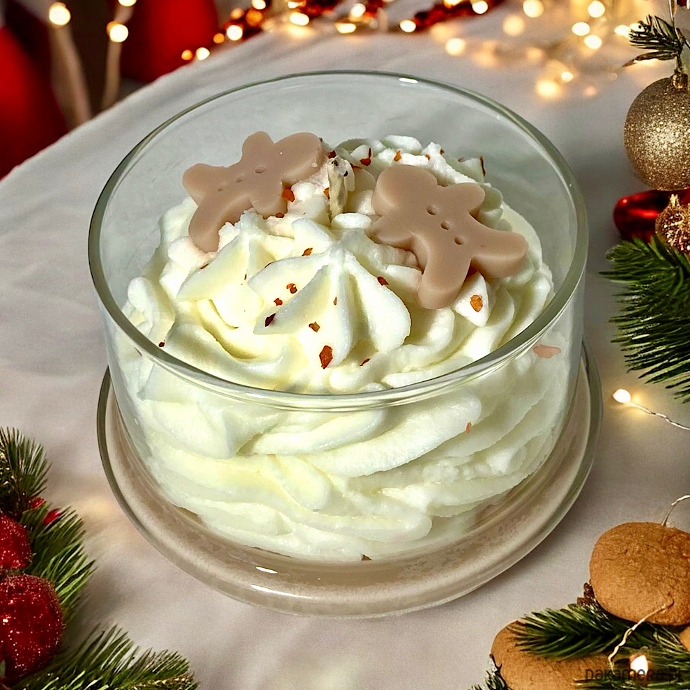 Zapach przywołujący wspomnienia ze Świąt Bożego Narodzenia. Te ciasteczka zna każdy, a ich pieczenie w okresie przedświątecznym jest w niektórych domach już tradycją. Pachną miodem, cynamonem, kardamonem, imbirem i wanilią. Taka właśnie jest ta świeca. Jej zapach jest niezwykle przyjemny, subtelny. Wygląda jak prawdziwy deser ozdobiony małymi piernikowymi ludzikami i posypką. Świecę otrzymasz zapakowaną w pudełko przewiązane wstążką. Szkło po wypaleniu świecy można umyć i wykorzystać jako np. cukiernicę.