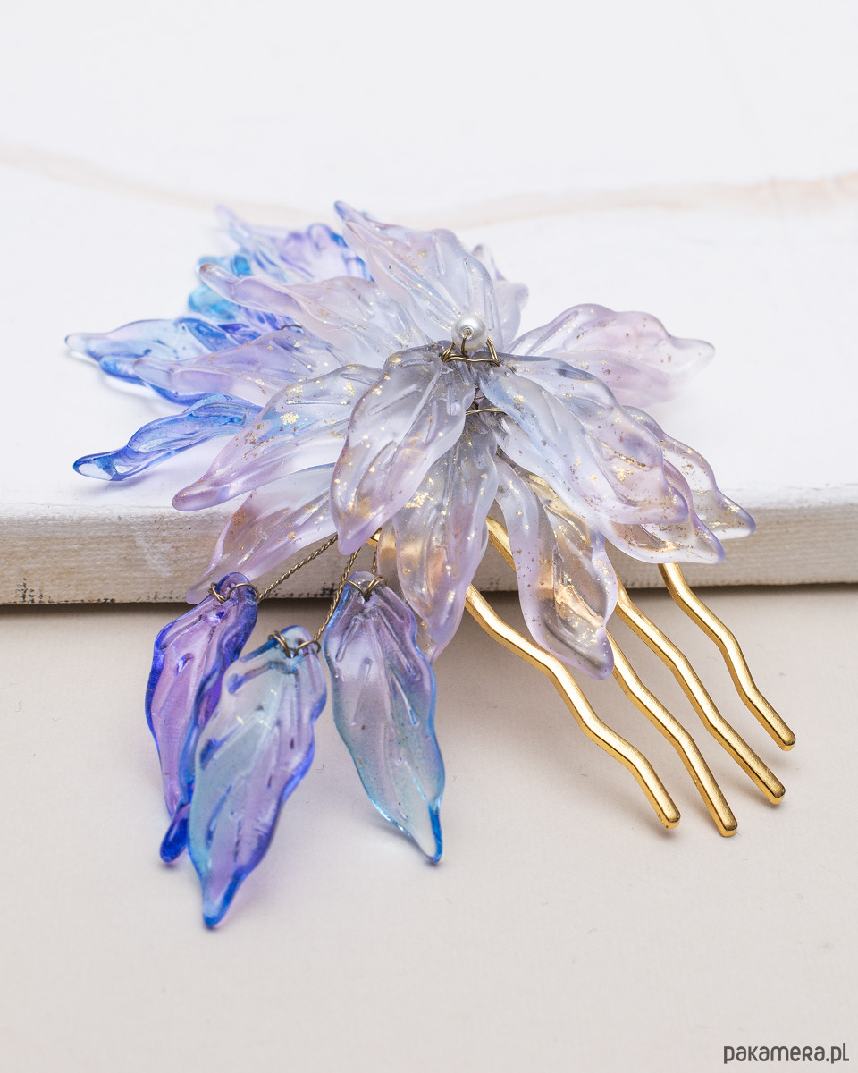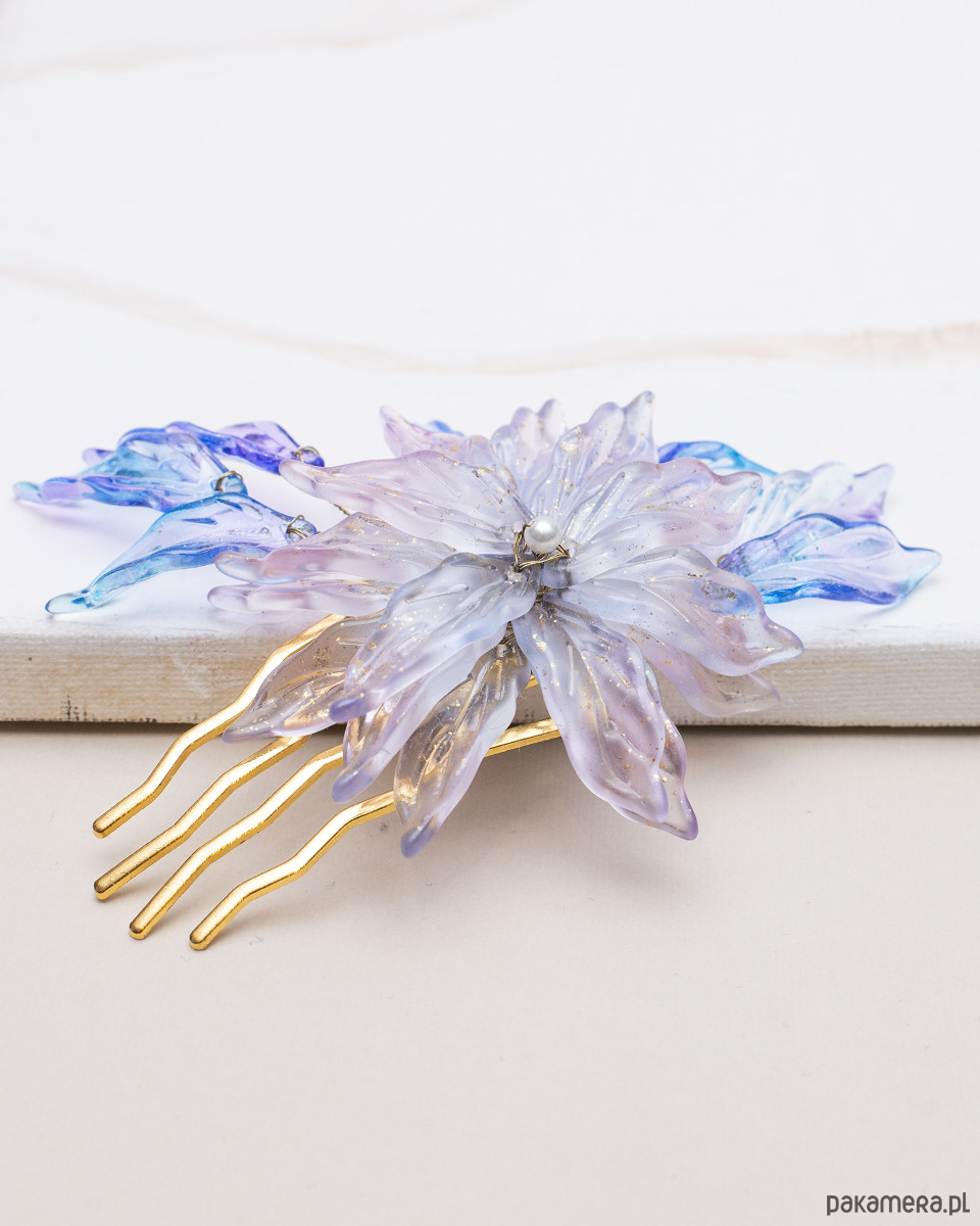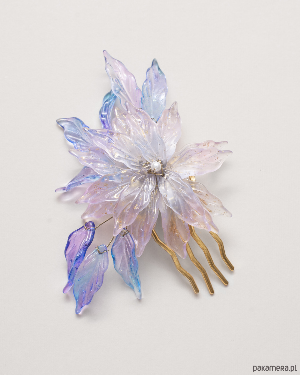 Zapraszam Cię do świata wyrafinowanej elegancji i prezentuję Ci ozdobny, ręcznie robiony grzebień do włosów stworzonym z miłości do piękna i detalu. To niepowtarzalny akcent, który doda uroku właścicielce.