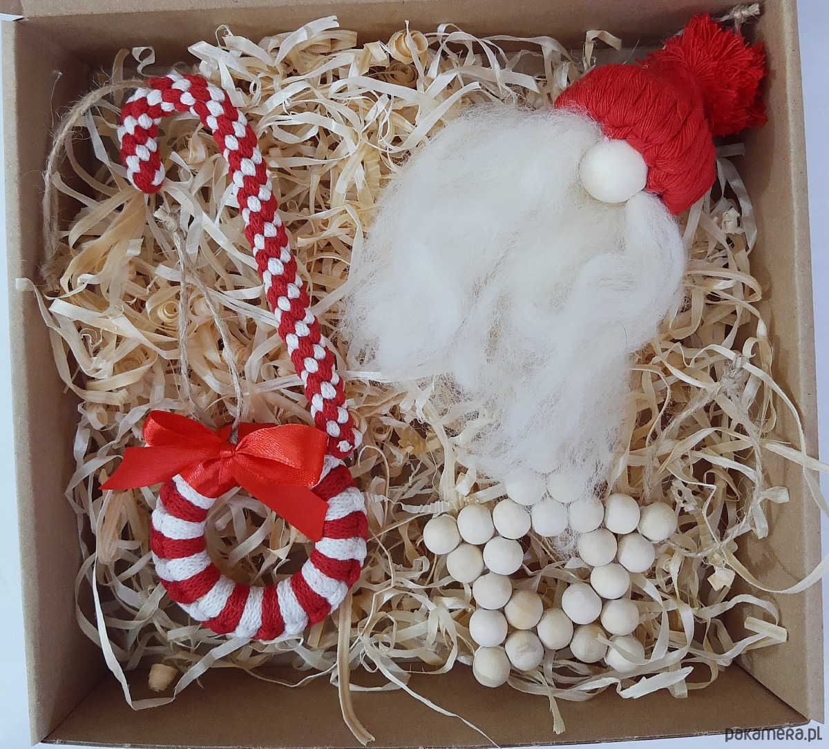 zestaw A: wieniec mini, drewniana gwiazdka, główka skrzata, laska candy cane