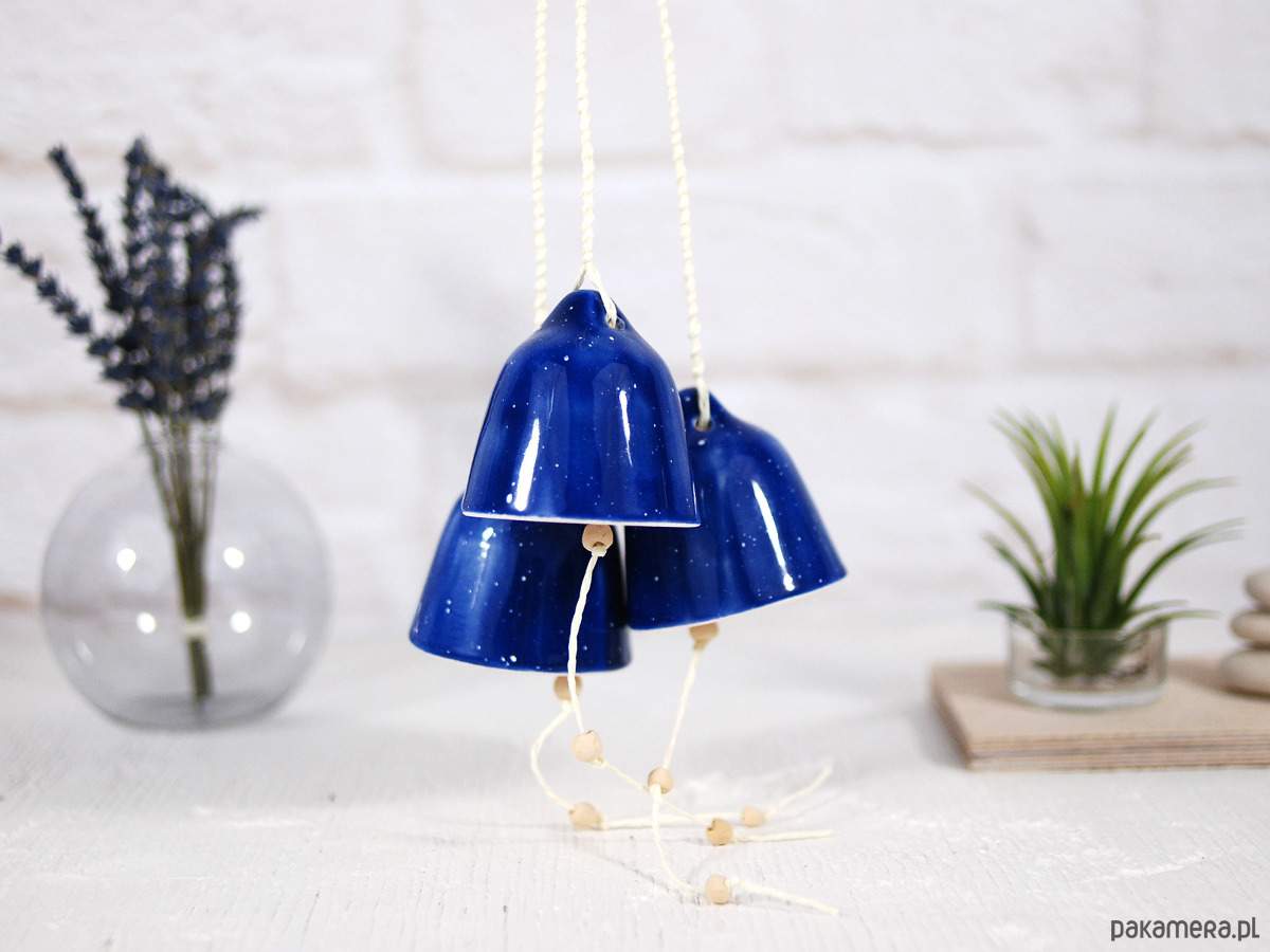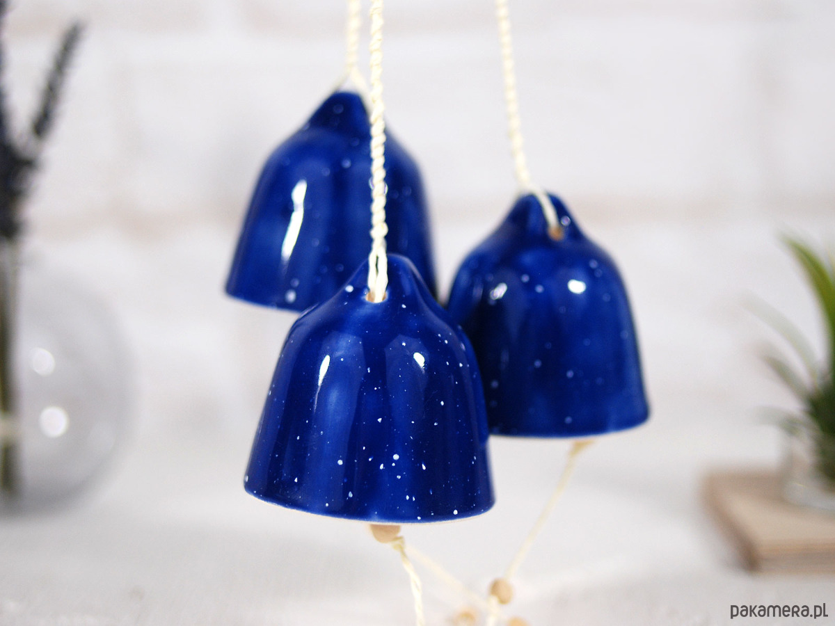 Zestaw zawiera 3 ręcznie robione i malowane, ceramiczne dzwonki.