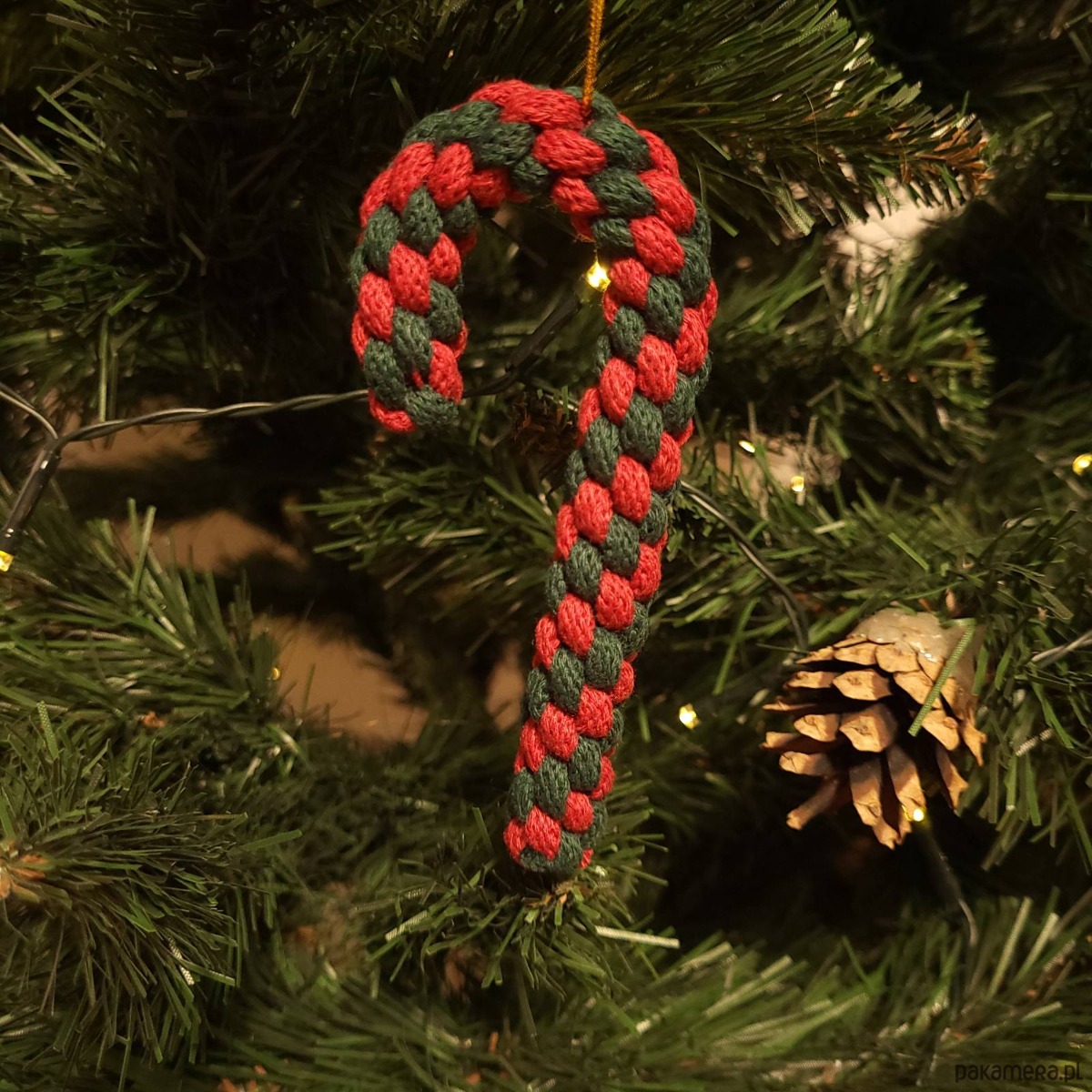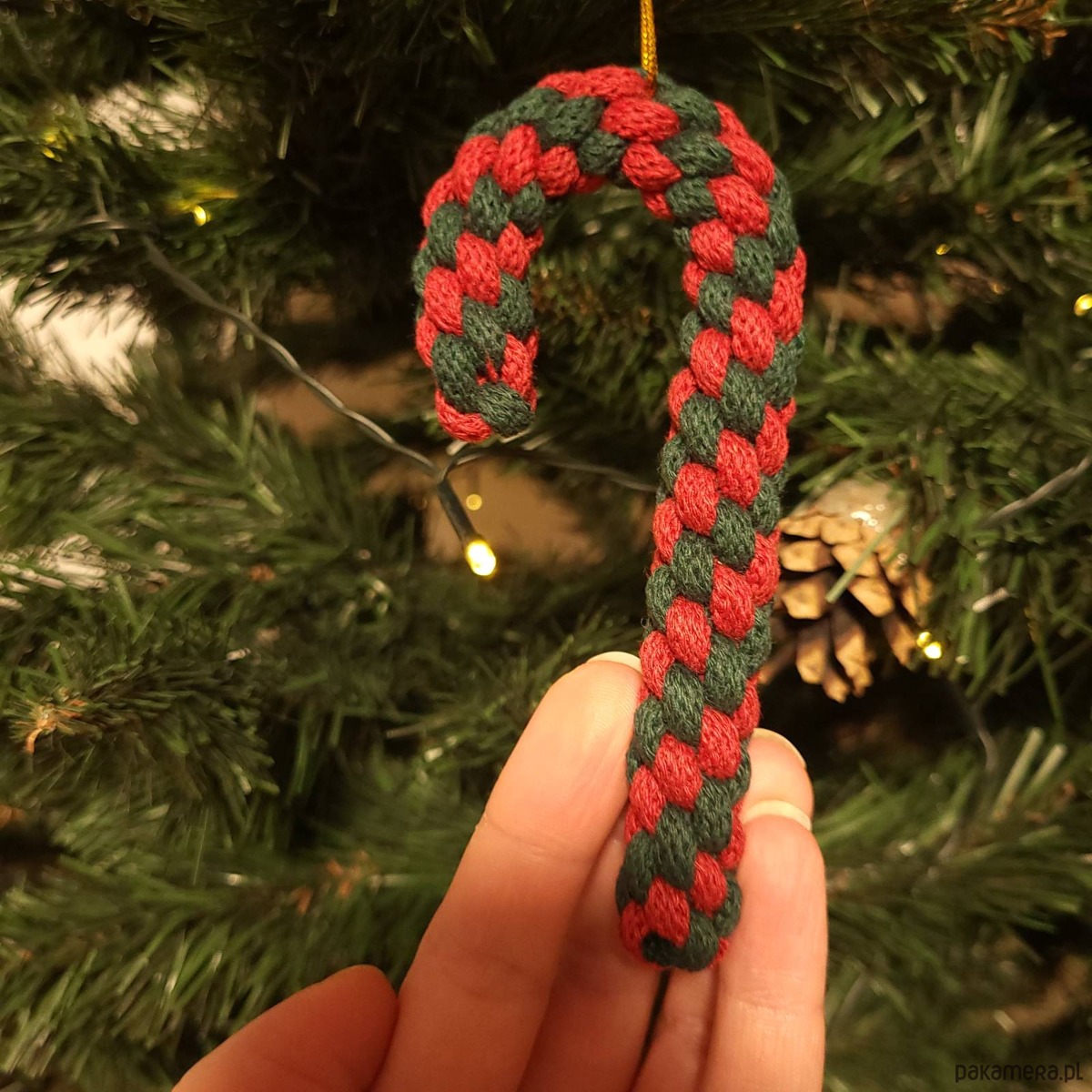 * cienki, złoty sznureczek pozwala powiesić ozdobę na choince
