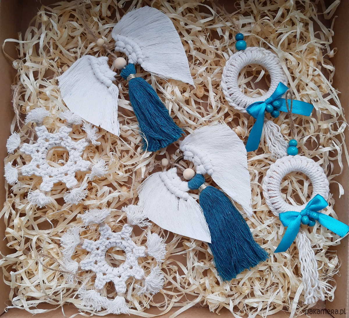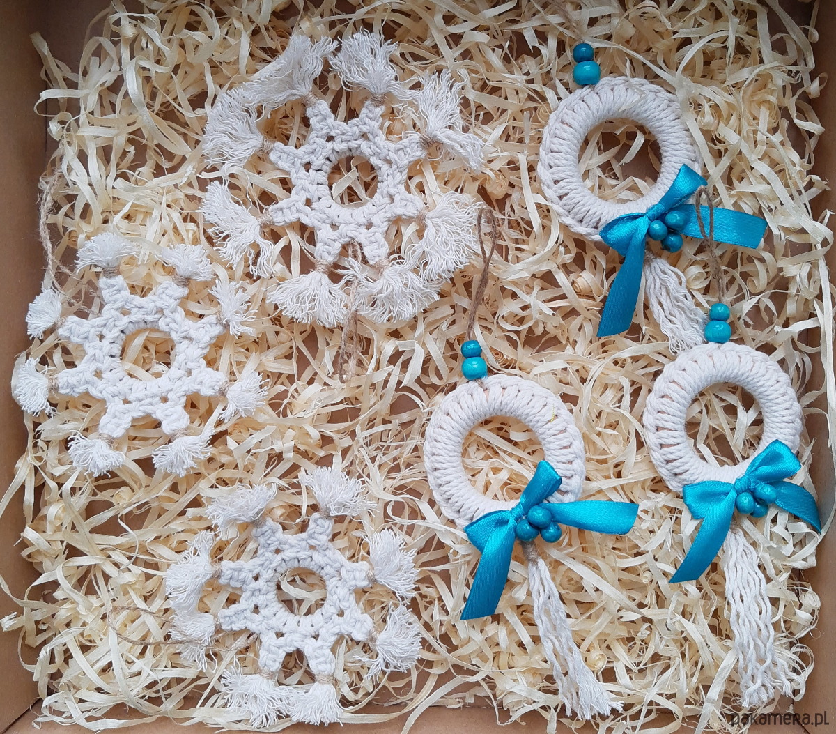Zestaw ozdób wykonałam ręcznie przy użyciu naturalnych materiałów - głównie bawełny oraz drewnianych elementów. Stworzyłam je z myślą o osobach, którym bliskie są delikatne, naturalne dekoracje przywołujące wspomnienia choinki u babci, skromnej i pięknej, z ozdobami wykonanymi ręcznie przez nią oraz jej dzieci albo wnuki.
