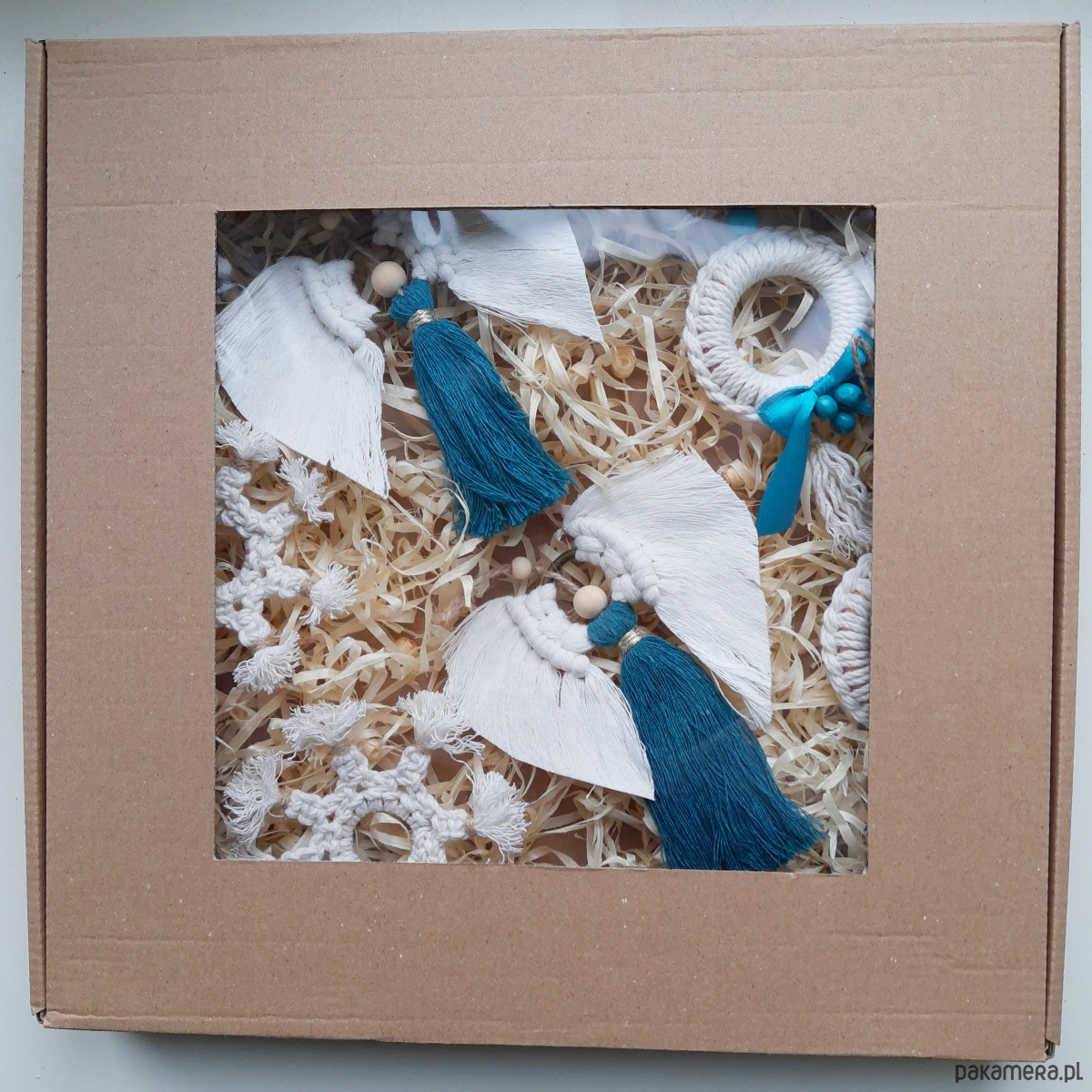 Zestaw zapakowany jest w pudełeczko z okienkiem, które przewiązuję papierową raffią z przewieszoną świąteczną etykietką - tak przygotowane pudełeczko możesz podarować w prezencie, od razu podając informację dla kogo prezent jest adresowany.