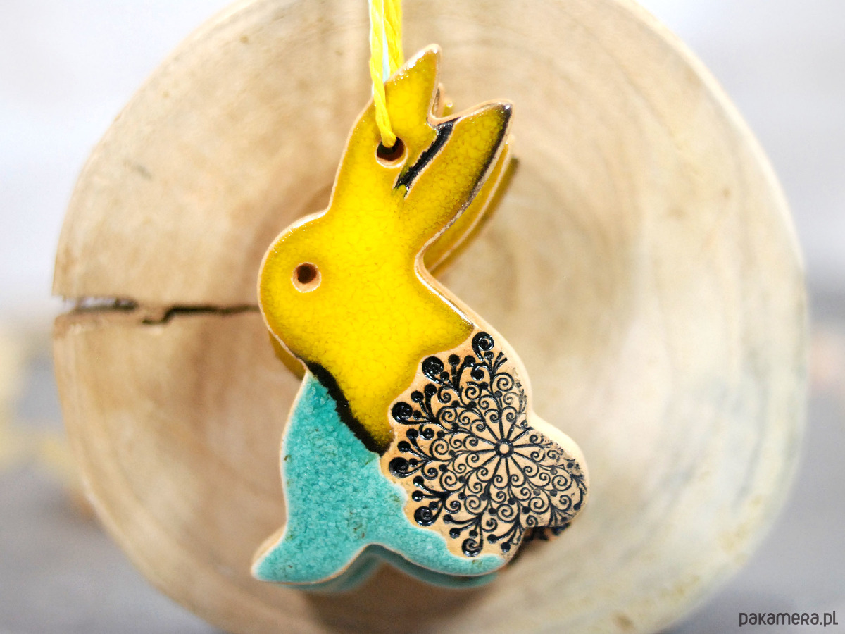 Zestaw zawiera 3 ręcznie robione i malowane, ceramiczne zawieszki wielkanocne. Urocze zajączki wielkanocne idealnie nadają się do dekoracji ściany, stołu, półek czy komody. Idealne zarówno jako element świątecznego wystroju, jak i wyjątkowy prezent dla bliskich.