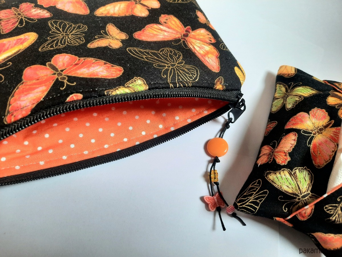 *Kosmetyczka jest usztywniona i dodatkowo szyta na ocieplinie, co dodaje jej objętości:) Zapinana na zamek. Wewnątrz dopasowana kolorystycznie podszewka.