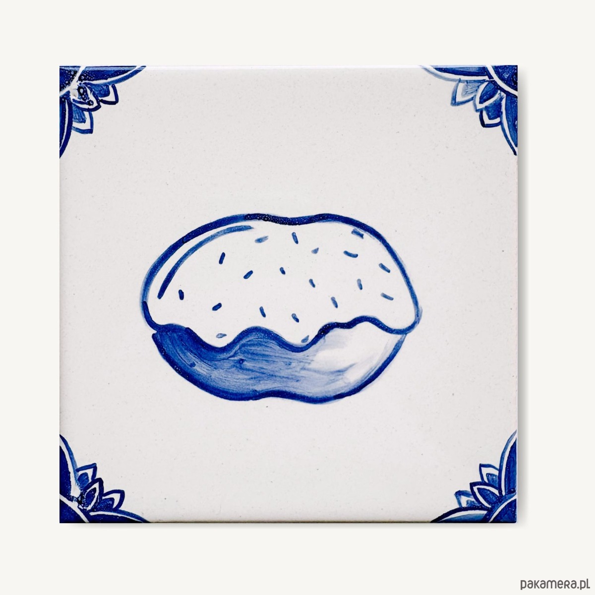 Każdy kafelek maluję ręcznie więc nie znajdziesz dwóch identycznych. Widoczne są pociągnięcia pędzla i drobne różnice w odcieniach.