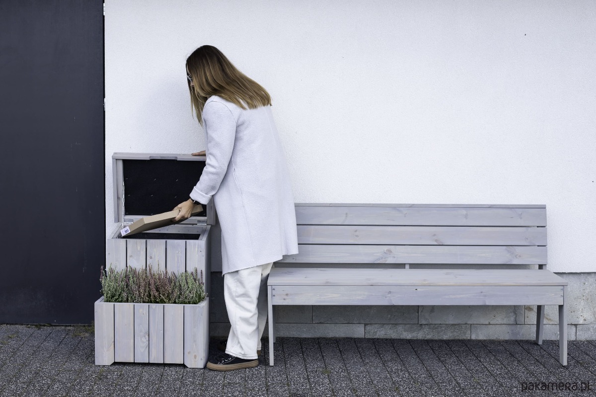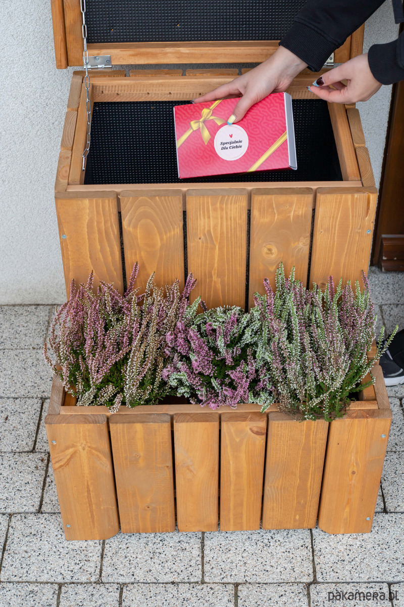 Z przodu znajduje się funkcjonalna donica, w której możesz posadzić swoje ulubione kwiaty, zioła lub rośliny sezonowe. Dzięki temu Paczkobox to coś więcej niż tylko opcja przechowywania – staje się elementem dekoracyjnym Twojego przedpokoju lub ogrodu.