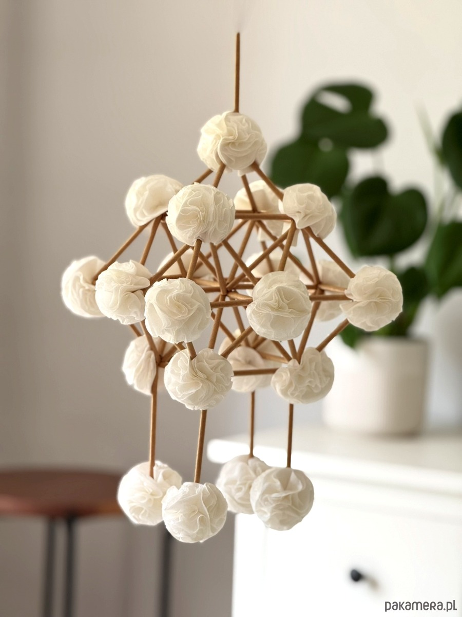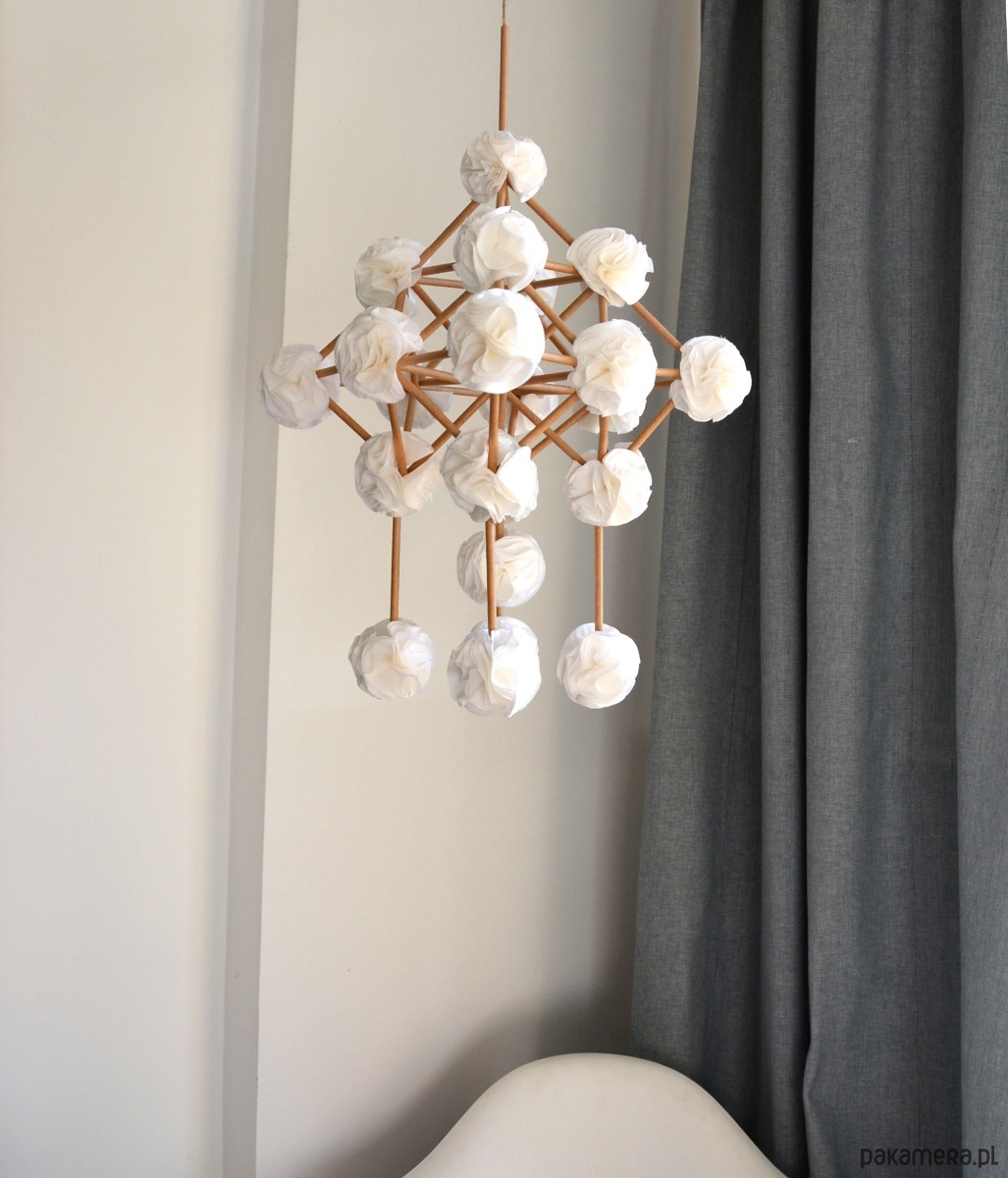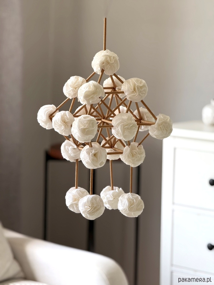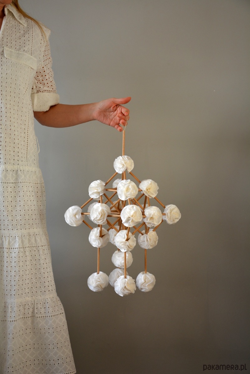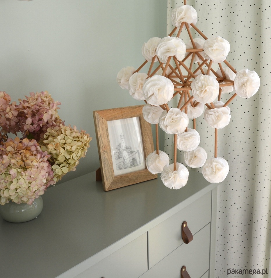 Dekoracja Pająk - stara dekoracja ludowa w nowoczesnym wydaniu. Została wykonana ręcznie z papierowych słomek oraz bibuły, z której utworzyłam pompony.