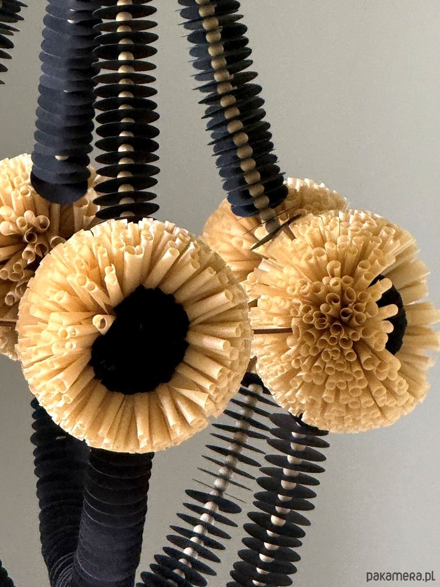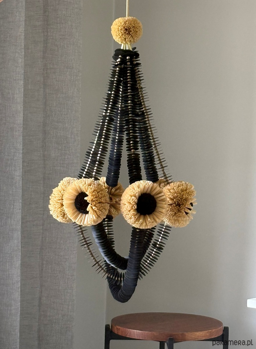 Pająk ludowy w nowoczesnym wydaniu. Konstrukcja oparta na drewnianych kulkach tworzy delikatną i oryginalną dekorację do każdego wnętrza. Całość wykonana ręcznie.