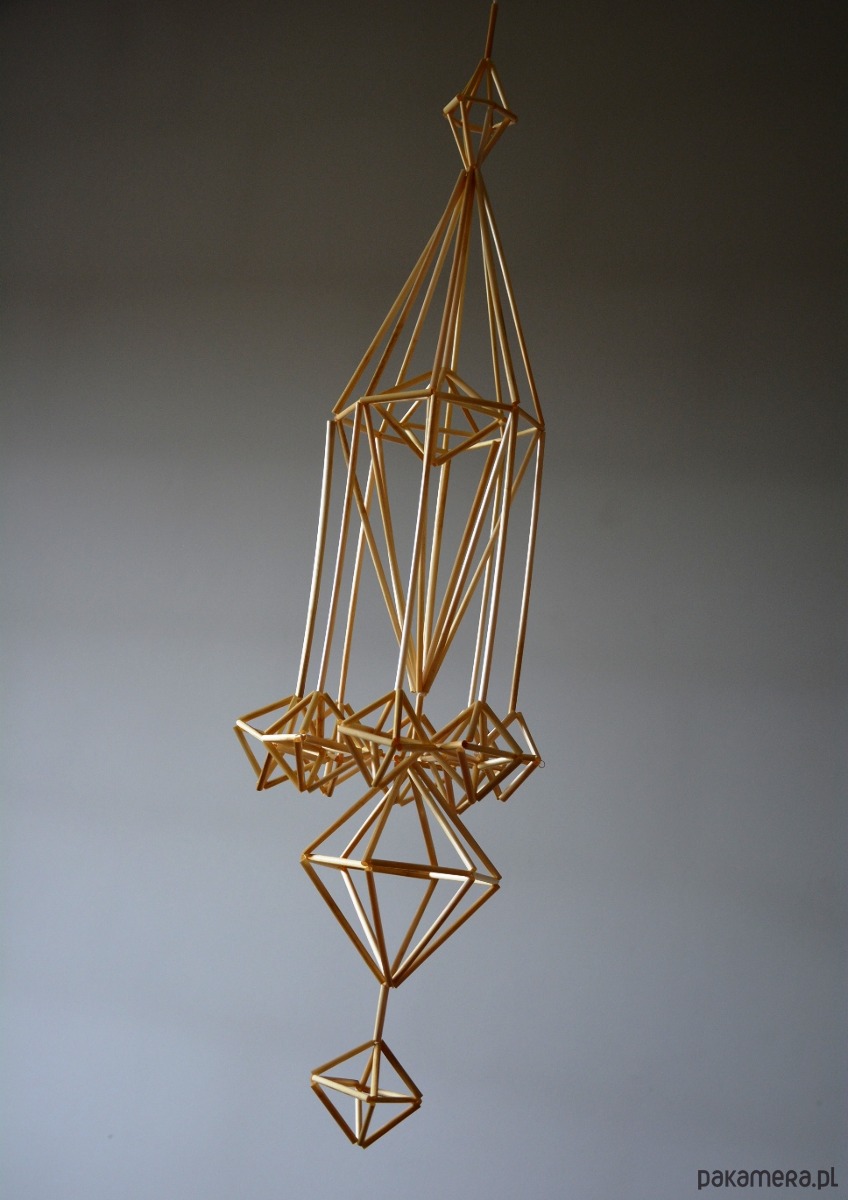 Pająk ludowy to dekoracja wisząca. Konstrukcja oparta na prawdziwych słomkach tworzy delikatną i oryginalną dekorację do każdego wnętrza. Całość wykonana ręcznie.