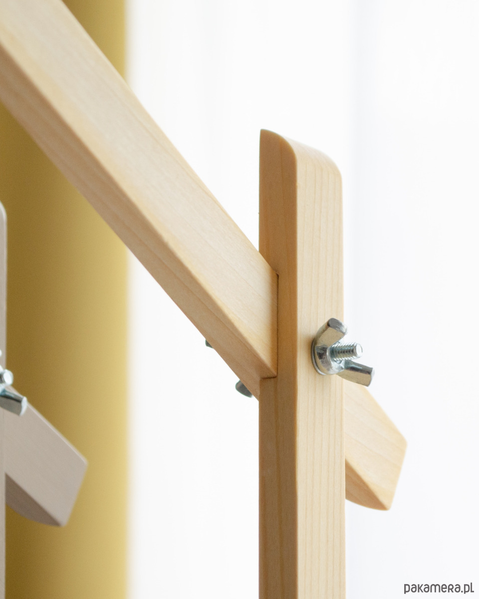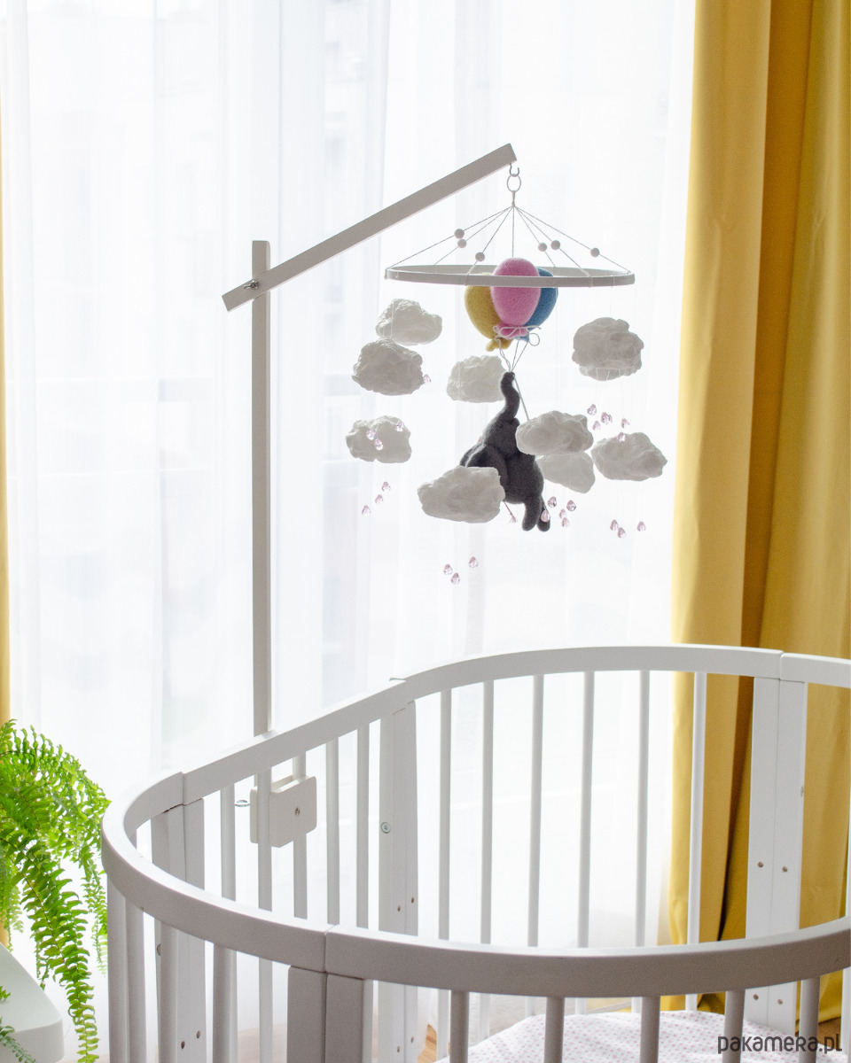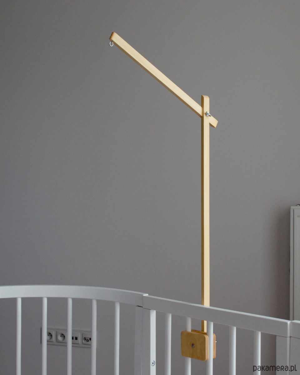Praktyczny i estetyczny uchwyt, dzięki któremu zawiesisz mobil lub karuzelę w łóżeczku niemowlęcym. Wykonany ręcznie z drewna sosnowego, jest lekki, składany i szybki w montażu. Naturalne materiały i bezpieczne wykończenie sprawiają, że świetnie pasuje do wnętrz w stylu montessori i nowoczesnych pokoi dziecięcych.