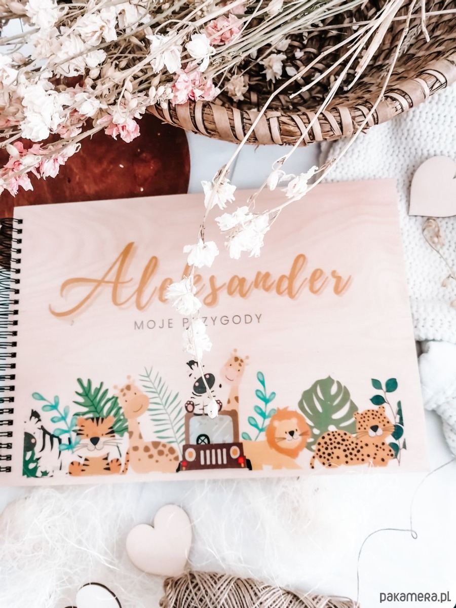 Pamiątka chrztu roczku album dla dzieci SAFARI
