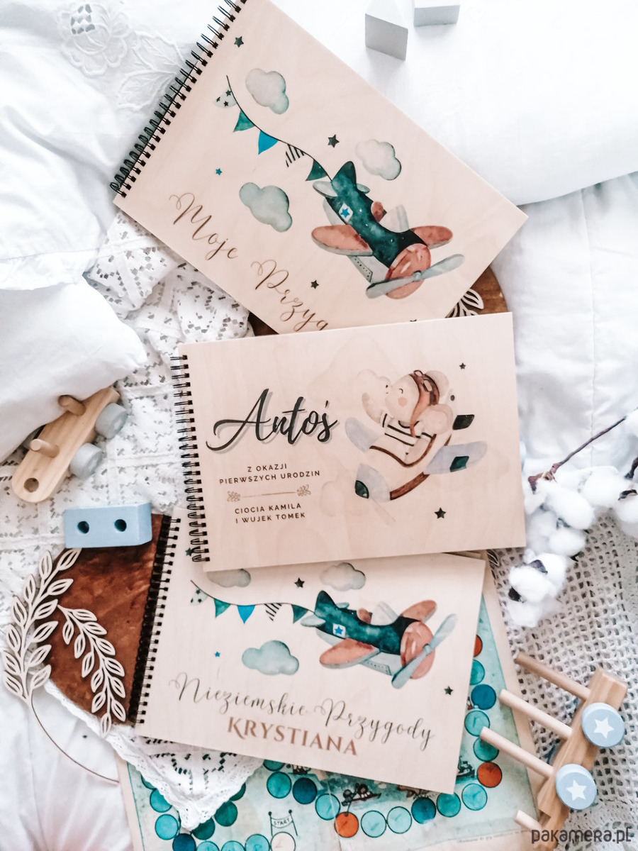 Pamiątka chrztu SAMOLOT album prezent dla chłopca chrzest roczek urodziny