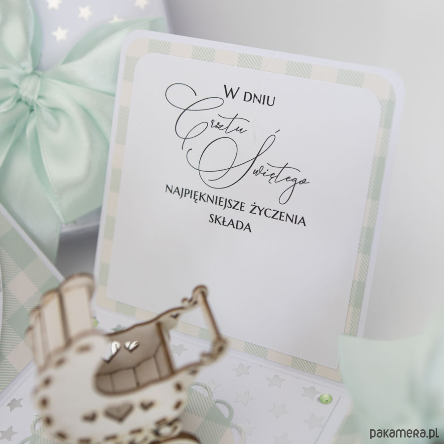 *Istnieje możliwość personalizacji pudełka. Jeśli zależy Ci na indywidualnych życzeniach, imieniu dziecka, dacie itp, oprócz pudełeczka kup "Personalizacja kartki" w osobnej ofercie i prześlij tekst jaki ma się znaleźć w pudełku. Po wcześniejszym ustaleniu mogę też dopasować kolorystykę pudełka czy kokardy i kwiatów w środku.