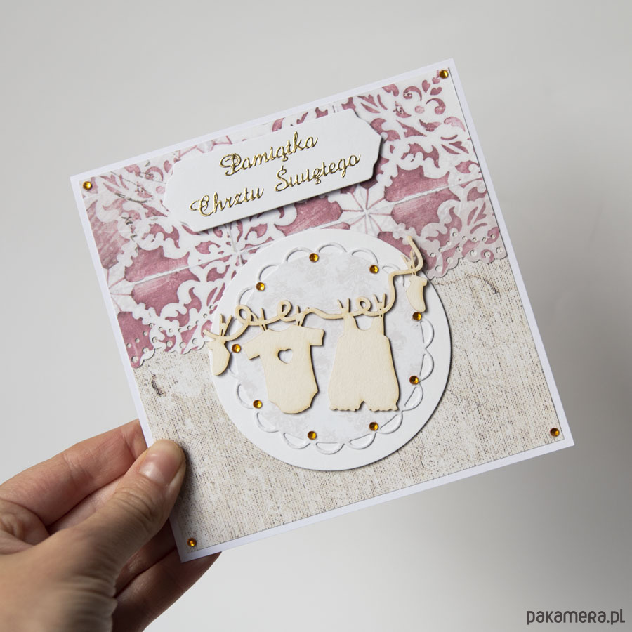 Ręcznie wykonana kartka z okazji Chrztu Świętego dziecka. Pojedynczy, niepowtarzalny egzemplarz.
