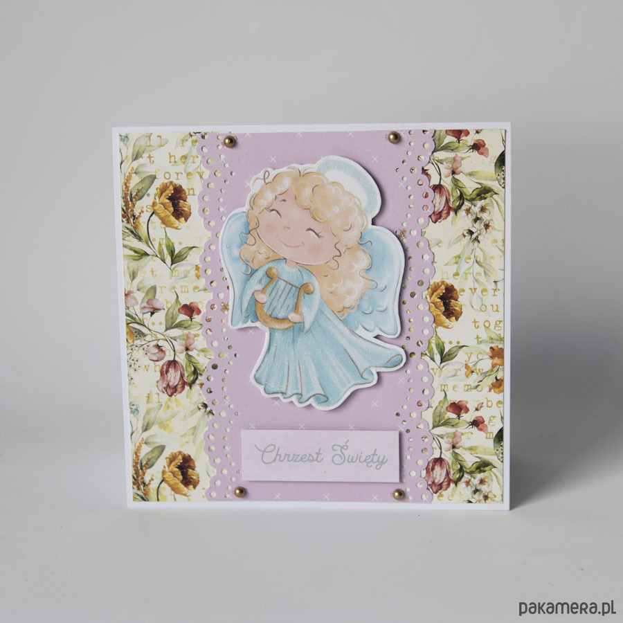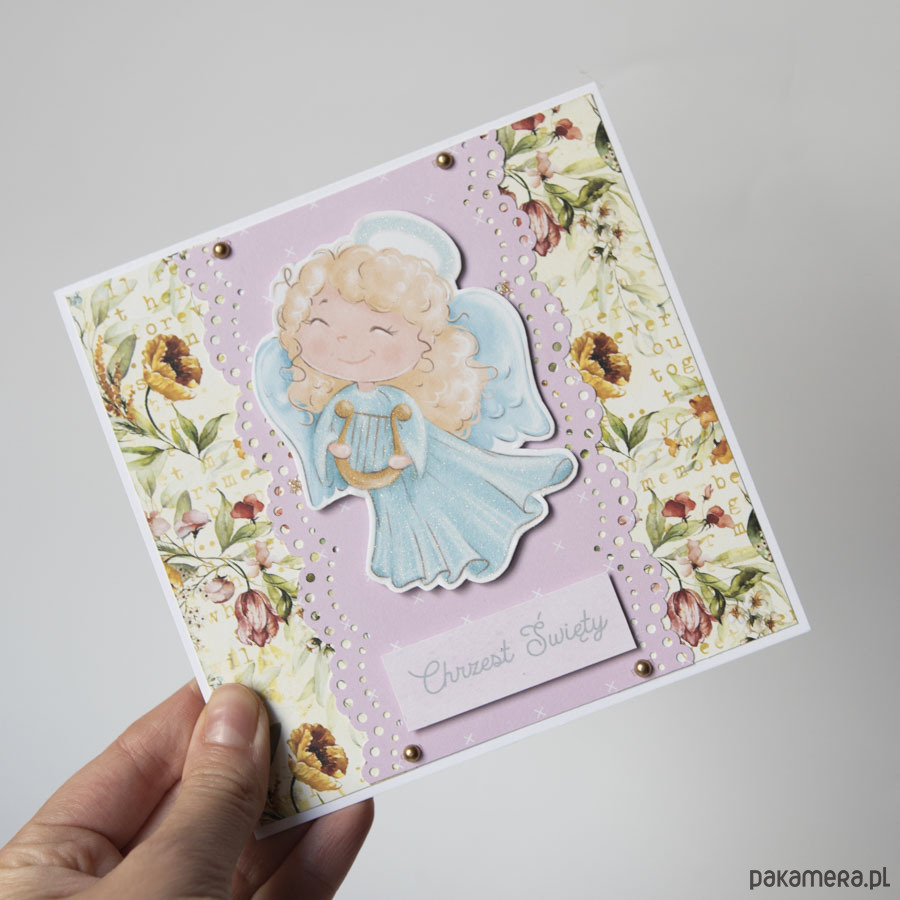 Ręcznie wykonana kartka z okazji Chrztu Świętego dziecka. Pojedynczy, niepowtarzalny egzemplarz.
